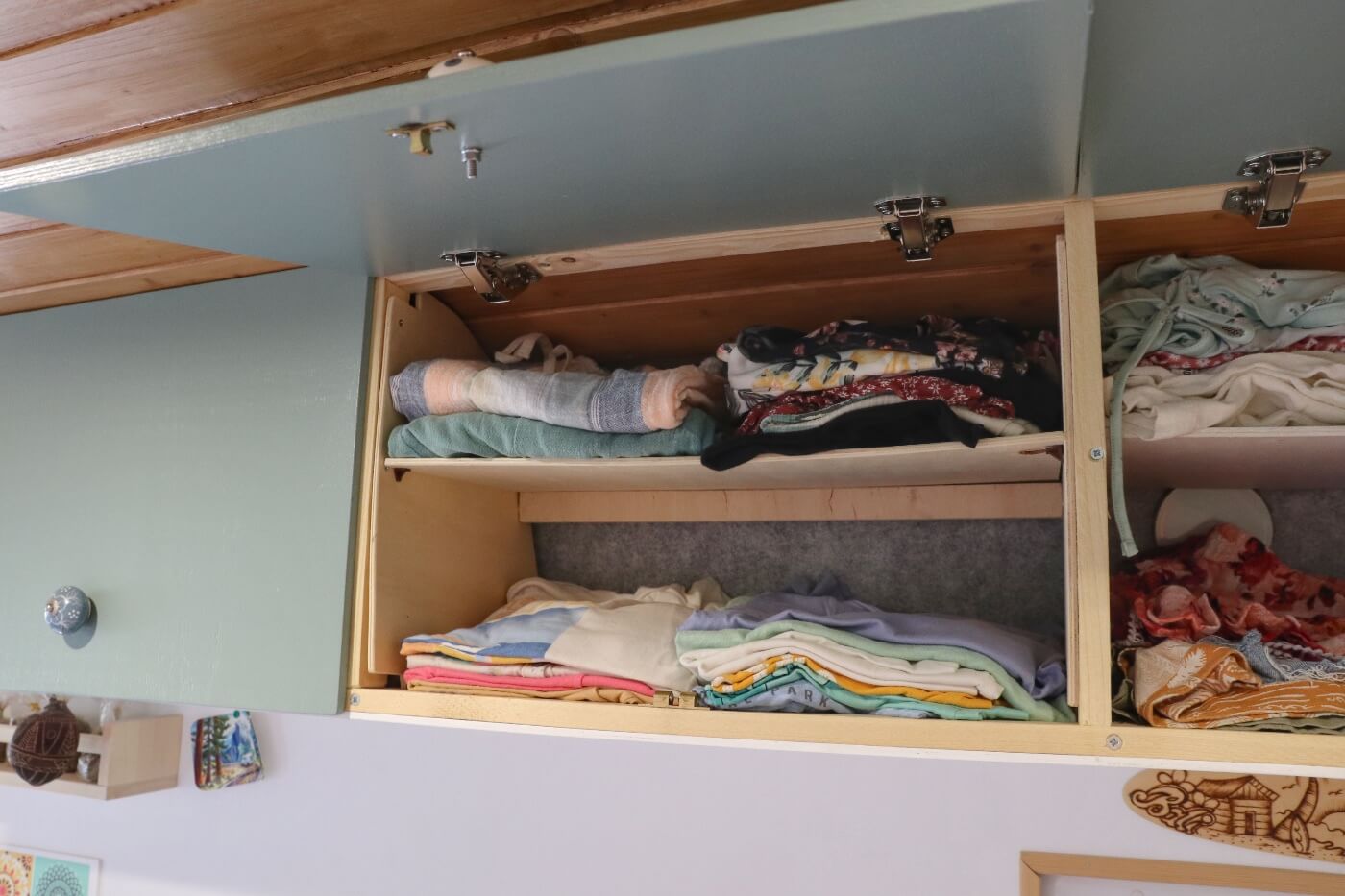 Eine tolle Möglichkeit für leicht zugänglichen Stauraum im Camper sind Hängeschränke. Der Bau von Hängeschränken erscheint auf dem ersten Blick vielleicht nicht ganz einfach, aber die Arbeit lohnt sich. So nutzt du die vertikale Fläche maximal aus, ohne dabei die Bewegungsfreiheit im Wohnbereich einzuschränken. Mit Hängeschränken gewinnst du viel Stauraum dazu, der sonst einfach verschwendet wäre.