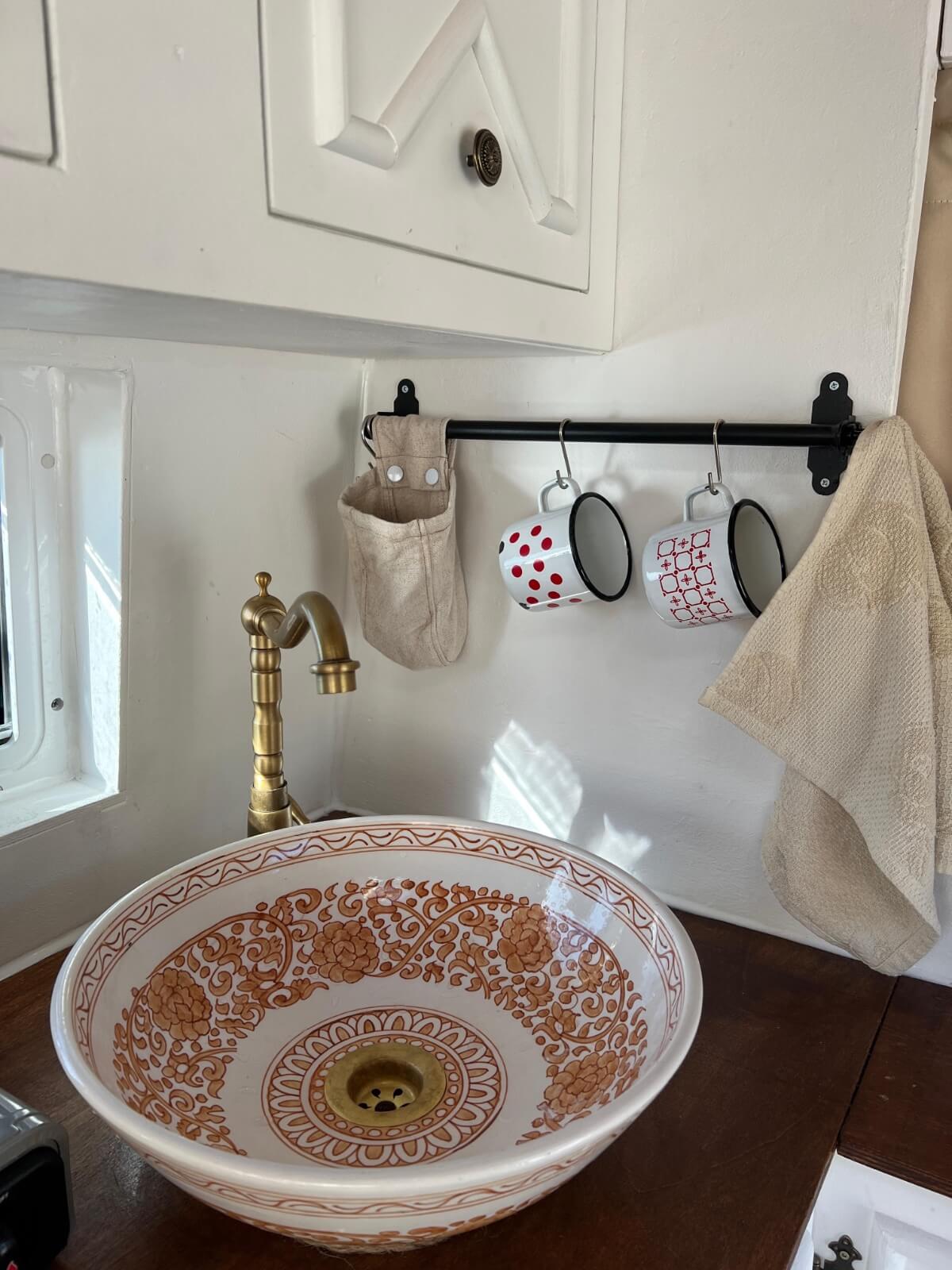Unser Waschbecken muss nicht besonders stylisch sein, sondern einfach nur seinen Zweck erfüllen. Deswegen haben wir uns für eine robuste Spüle aus Edelstahl* entschieden, die auch eine kleine Abtropffläche hat. Bei der Spüle sind deiner Kreativität aber keine Grenzen gesetzt, eine hübsche Salatschüssel wird so zum echten Hingucker.