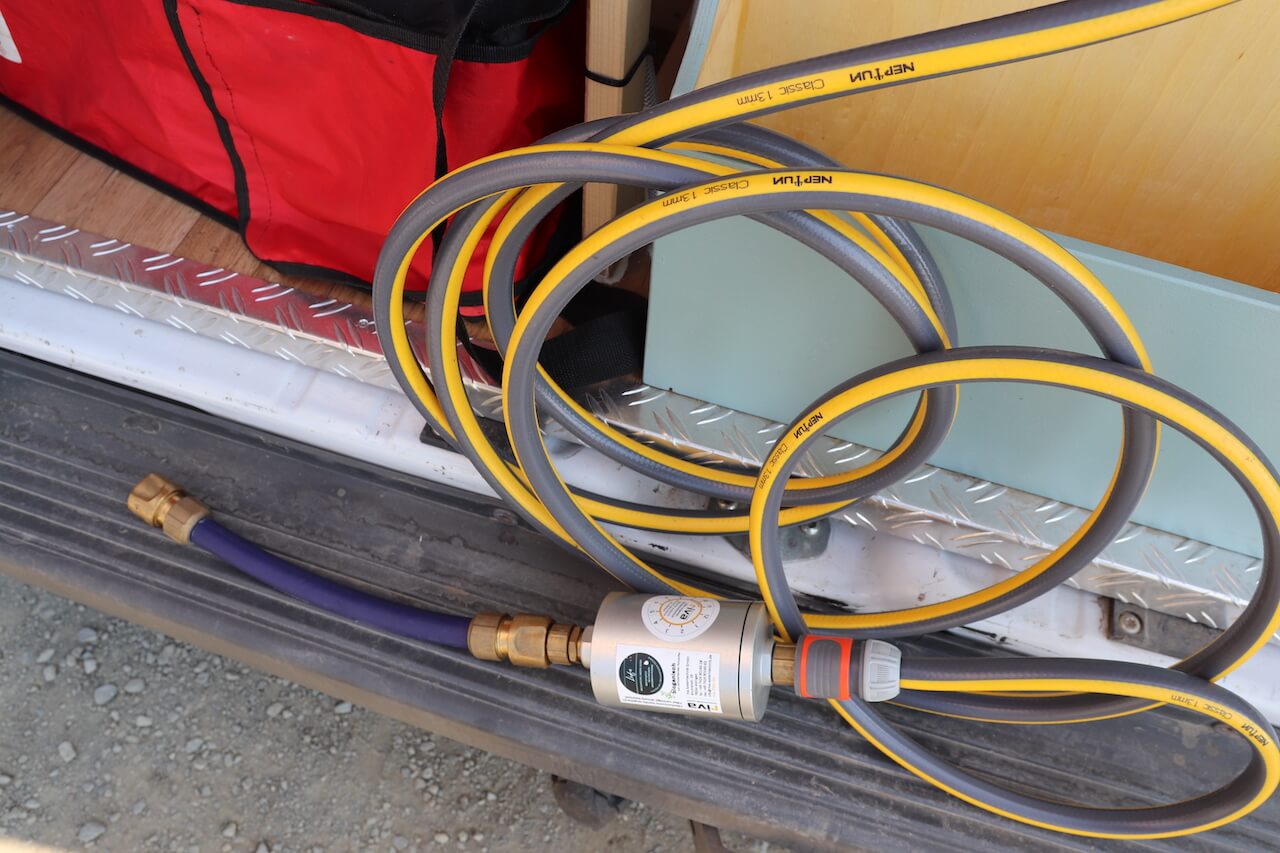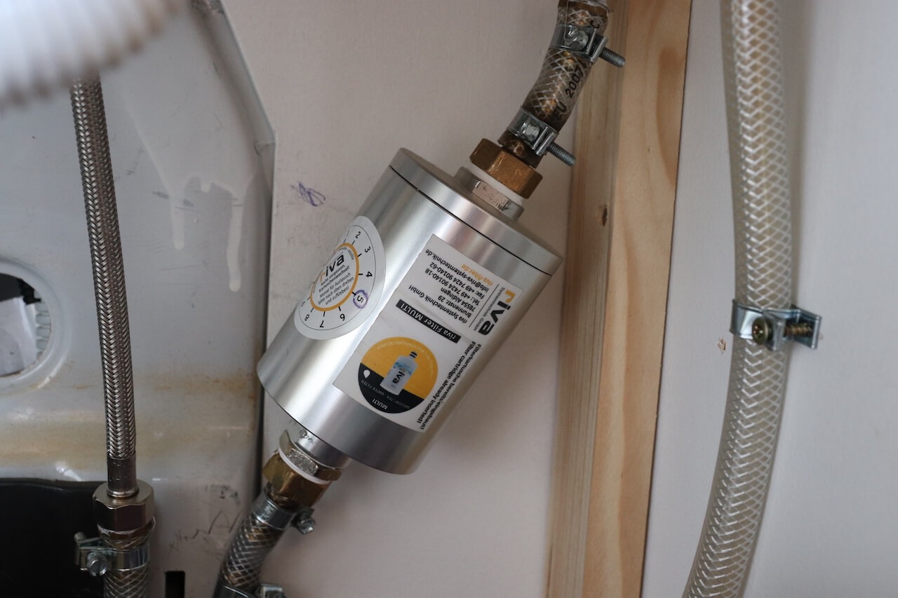 Wir trinken das Wasser aus unserem Van und haben dafür einen Trinkwasserfilter* eingebaut. So können wir überall auf der Welt das Wasser aus unserem Hahn trinken und müssen keine Wasserflaschen kaufen. Das Explorer Overland Set* beinhaltet einen Aktivkohlefilter und einen Legionellen- und Bakterienfilter. Der Aktivkohlefilter filtert unter anderem Schwermetalle, Chlor, Medikamentenrückstände und Mikroorganismen aus dem Wasser. Damit diese gar nicht erst in unserem Frischwassertank* landen, haben wir ihn in unserem Wasserschlauch zum Befüllen des Tanks eingesetzt und das Wasser wird so direkt gefiltert. Der Legionellenfilter filtert Bakterien, Legionellen und Keime aus dem Wasser.