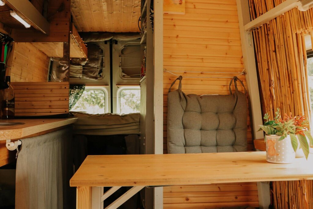 Wenn du in deinem Camper genügend Platz für ein fest verbautes Bett sowie für eine feste Sitzecke hast, dann ist diese Option vielleicht etwas für dich. Allerdings nimmt eine feste Sitzecke auch viel Platz weg und eignet sich eher für größere Vans. Letztendlich geht man bei jedem Ausbau einen Kompromiss ein, schließlich baut man ein kleines Haus auf Rädern und hat eben nur wenige qm zur Verfügung.