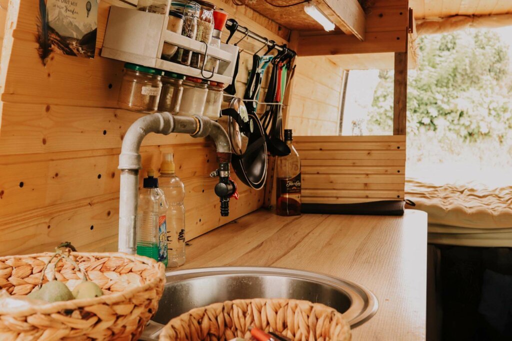 Auch die Wasserversorgung im Camper ist ein wichtiger Bestandteil vom Ausbau und bedarf einer guten Planung. Hier findest du Inspiration für deinen Ausbau.