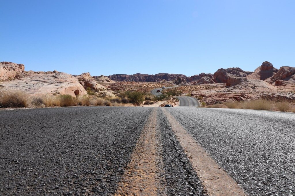 Die Fahrt nach Las Vegas zieht sich in’s Unendliche. Nach insgesamt 5 Stunden Fahrt kommen wir ziemlich müde in Las Vegas an und freuen uns schon auf das gemütliche Bett in unserem Campervan!