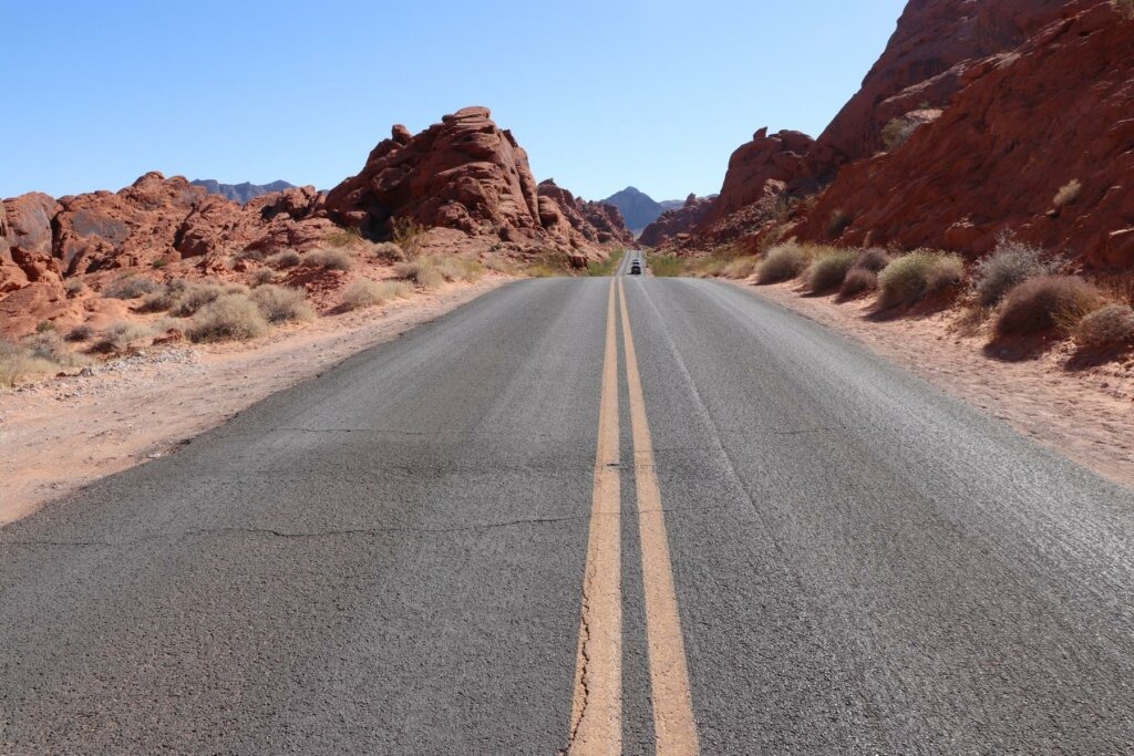 Unser erster Stopp führt zu dem Valley of Fire. Dieses liegt 80 Kilometer von Las Vegas entfernt. Bereits 1935 eröffnet ist er der älteste und auch mit seinen 141 qm auch der größte State Park vom US-Bundesstaat Nevada.