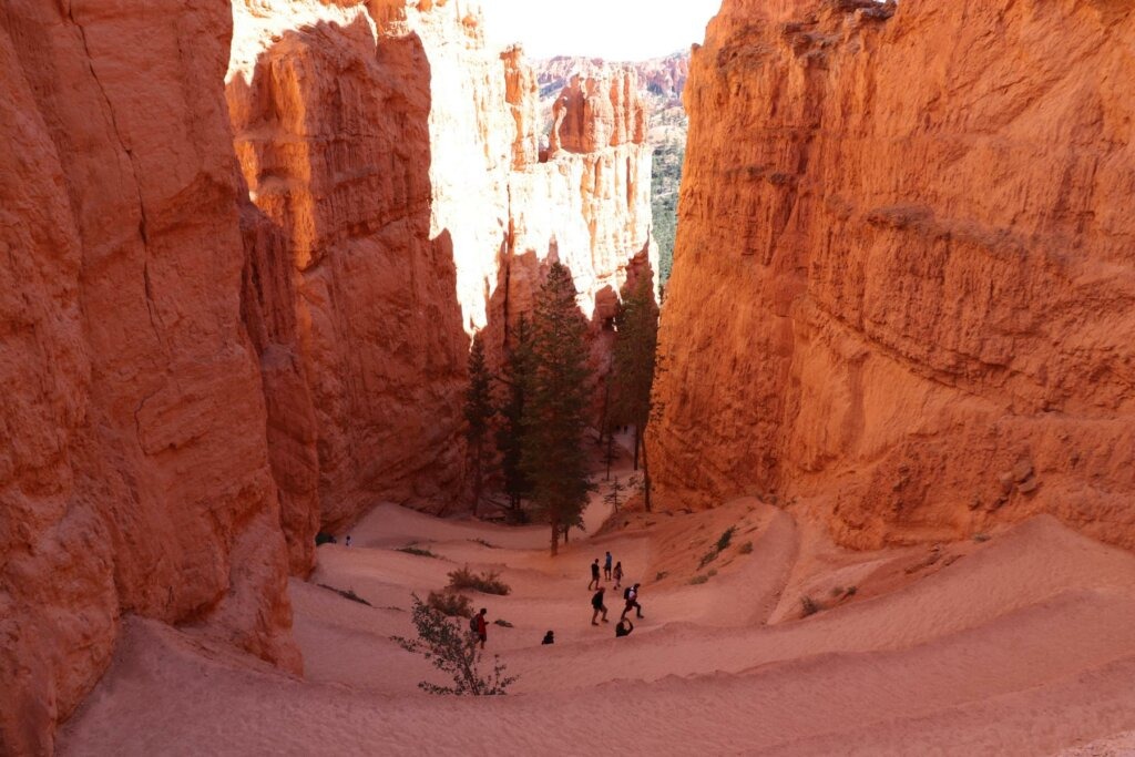 Im Laufe von Jahrmillionen schufen Wind, Eis und Wasser hier eine faszinierende Welt aus Felsnadeln, Steintürmen und tiefen Furchen. Es gibt eine Vielzahl von kürzeren und längeren Wanderwegen, welche eine tolle Sicht auf die Hoodoos ermöglichen und die sogar durch diese hindurchführen. Wir gehen den Navaja Loop und den Queens Garden Trail.