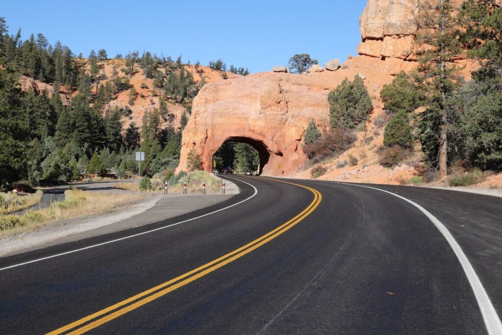 Der Bryce Canyon liegt im Südwesten des US-Bundesstaates Utah auf einer Höhe von 2400 bis 2700 Meter. Von unserem Campingplatz sind es noch rund 200 Kilometer und nach zweieinhalb Stunden Fahrt erreichen wir den Park. Die Hauptsaison für den Bryce Canyon ist ist von Mai bis Oktober und dementsprechend viel ist hier los. Parkplätze und Campingplätze sind heiß begehrt. So fahren wir nach unserer Ankunft in dem Park direkt auf einen Campingplatz und reservieren wir uns dort für den Abend einen Platz.
