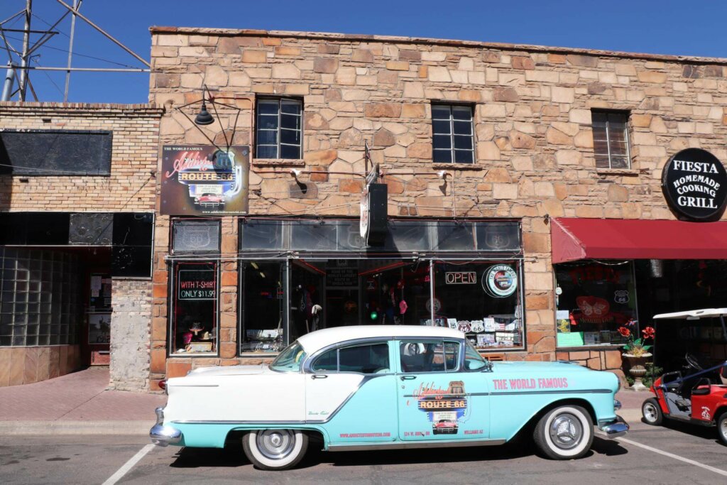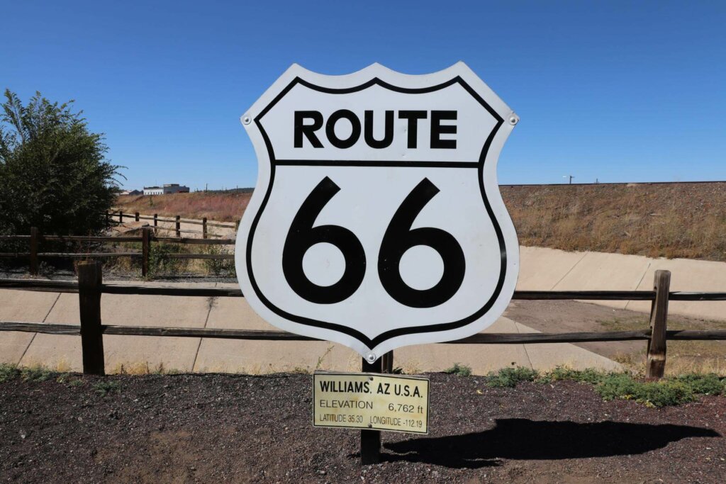 Nun liegt noch eine weitere Fahrt vor uns. Wir müssen heute in Las Vegas unseren Mietwagen abgeben. Zwischen dem Grand Canyon und Las Vegas liegen 470 Kilometer. Vorbei kommen wir an dem kleinen beschaulichen Ort Williams, wo früher die bekannte Route 66 vorbei geführt hat.