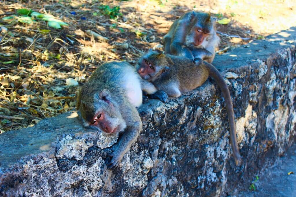 An der Tempelanlage sind Affen anzutreffen, die mit der Zeit jegliche Scheu vor den Menschen verloren haben. Einige sitzen ganz friedlich auf einer Mauer und entlausen sich gegenseitig.