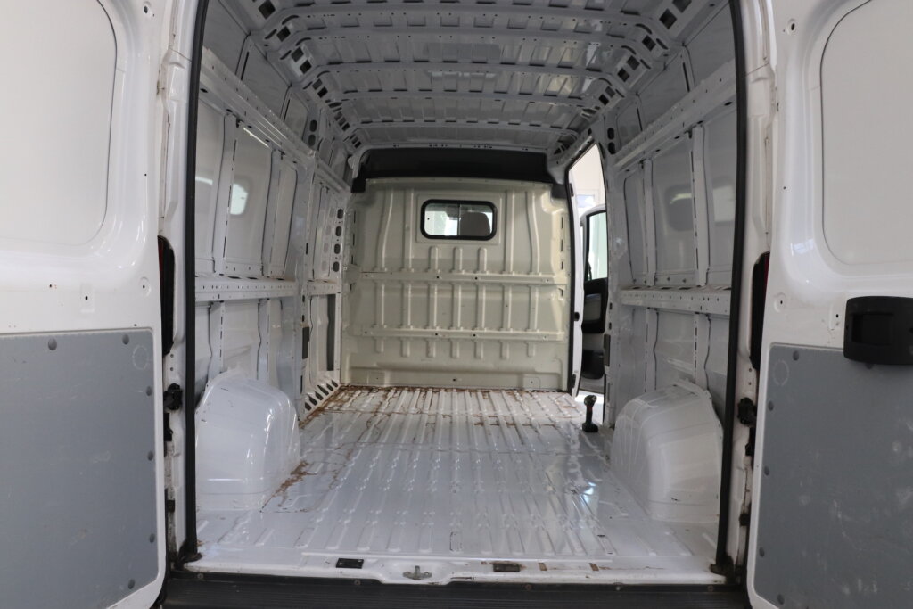 Der erste Schritt besteht darin, erst einmal die komplette Verkleidung einschließlich der Trennwand (vorausgesetzt du möchtest sie nicht drinnen lassen) sowie der Bodenplatte aus dem Fahrzeug rauszunehmen. Wenn Schrauben festgerostet sind oder man Nietmuttern nicht lösen kann, macht es das oft schwieriger. Wir entfernen zuerst die Seitenverkleidungen, die mit Bohrschrauben und Klipsen in der Karosseriewand befestigt ist. Außerdem müssen wir die Airlineschienen entfernen. Dazu bohren wir mit dem Akkuschrauber die Nieten auf. Als nächsten ist die Trennwand an der Reihe. Dazu mussten wir zwei Abreißschrauben und einige Sechskantschrauben entfernen.