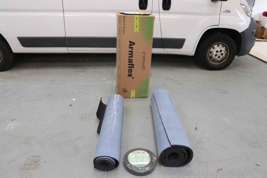 Armaflex ist ein Kautschukmaterial und ist bei den Van Ausbauern sehr beliebt. Der Hersteller wirbt mit der Eigenschaft der Tauwasserverhinderung und der leichten Verarbeitung. Armaflex hat eine niedrige Wärmeleitfähigkeit, nimmt keine Feuchtigkeit auf und ist schwer entflammbar. Durch die selbstklebende Folie ist es wirklich einfach zu verwenden.