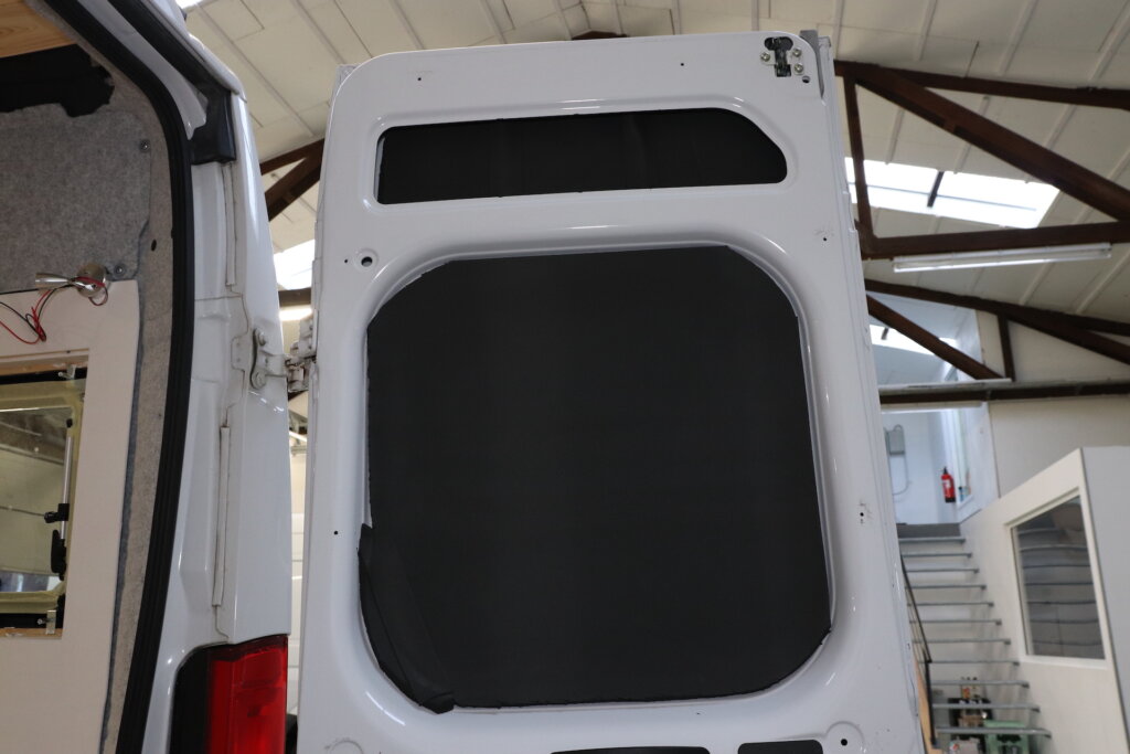 Bei allen großen Flächen haben wir das 19 mm starke Armaflex* genutzt. Auch den Dachhimmel über der Fahrerkabine haben wir mit 19 mm gedämmt. Bei unserem Sprinter mussten wir dafür die Verkleidung vom Fahrerhaus abnehmen und das war etwas umständlich. Bei dem Fiat Ducato sitzt an dieser Stelle keine Verkleidung und so war es diesmal ganz unkompliziert. Außerdem haben wir auch die Flächen unter den Plastikabdeckungen an der Schiebetür sowie bei den Hecktüren mit 19 mm gedämmt.