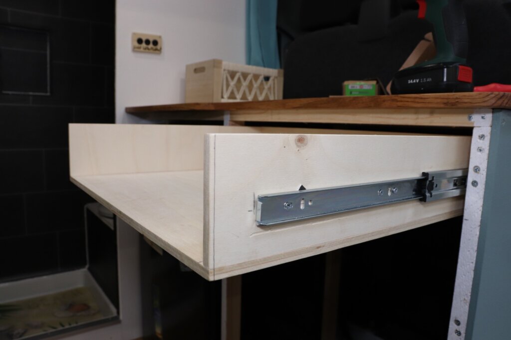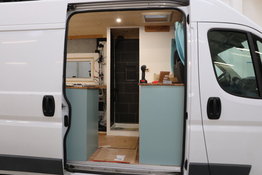 Die Küche beim Camper Ausbau ist das Herzstück des Vans. Hier werden wir kochen, spülen, Zähne putzen und unsere Hände waschen.