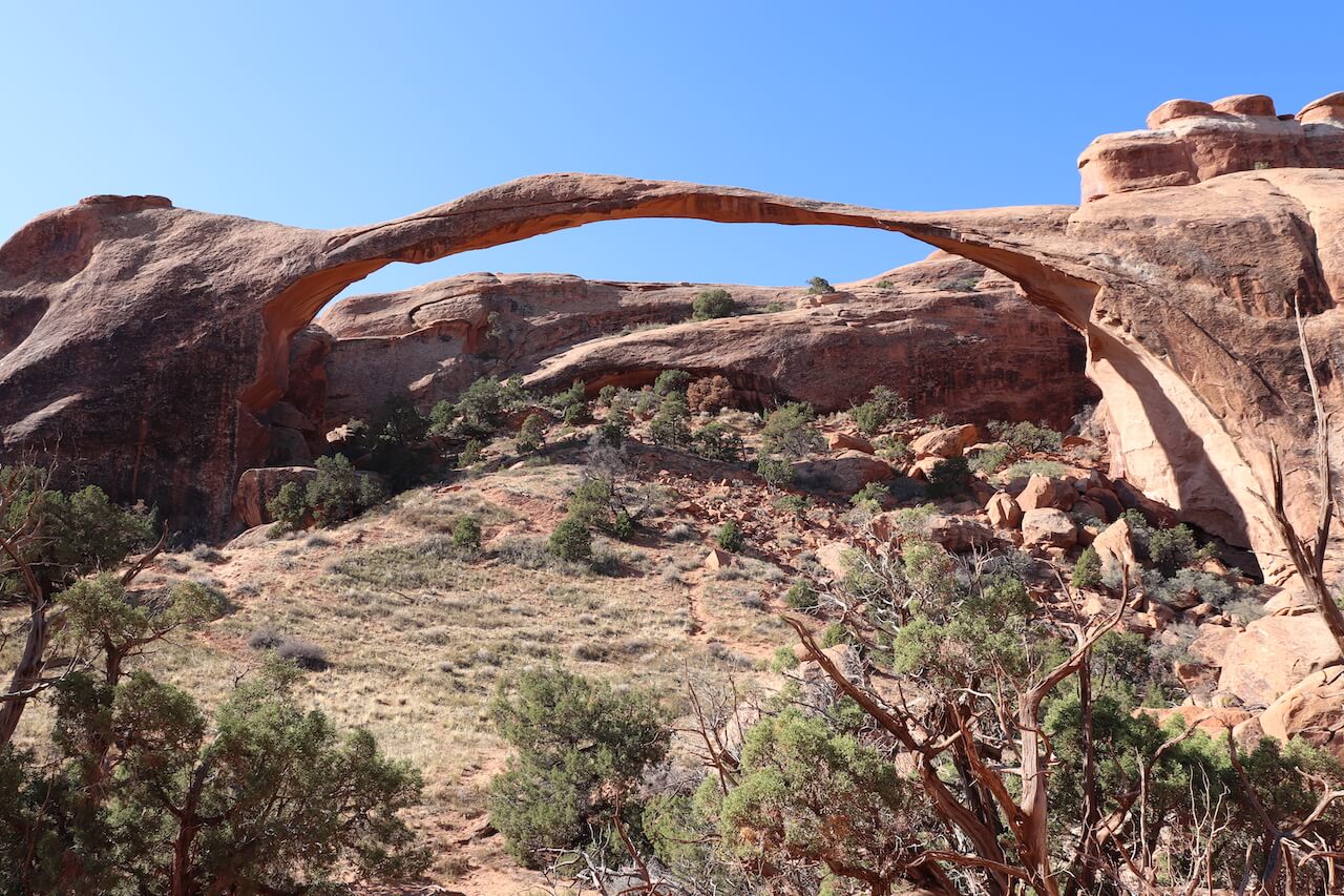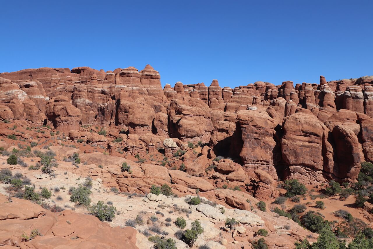 Der Arches Nationalpark ist einer der bekanntesten Nationalparks in den USA und hier ist deutlich mehr los als im benachbarten Canyonlands. Hier gibt es neben den vielen roten Felsen auch 1500 Natursteinbögen, die Wind und Wetter in den letzten Millionen Jahren geformt haben. Ab dem 4 Oktober kann man mit dem eigenen Auto in den Park reinfahren, davor ist die Anzahl der Besucher durch ein Reservierungssystem begrenzt. Das Highlight ist der ‚Delicate Arch‘, ein 14 Meter hoher Natursteinbögen. Am Vormittag wandern wir durch den Devil’s Garden zu verschiedenen Arches und besuchen am Nachmittag noch andere Aussichtspunkte und Arches.