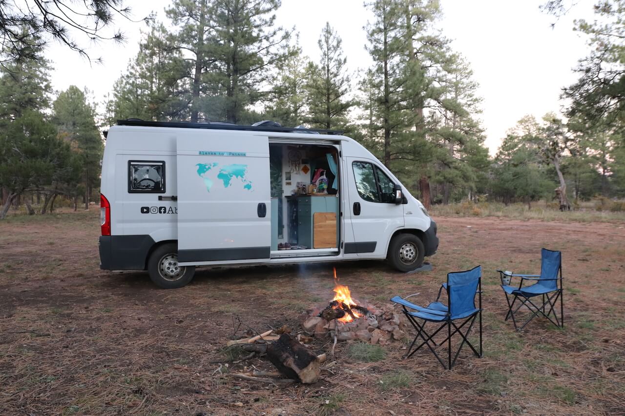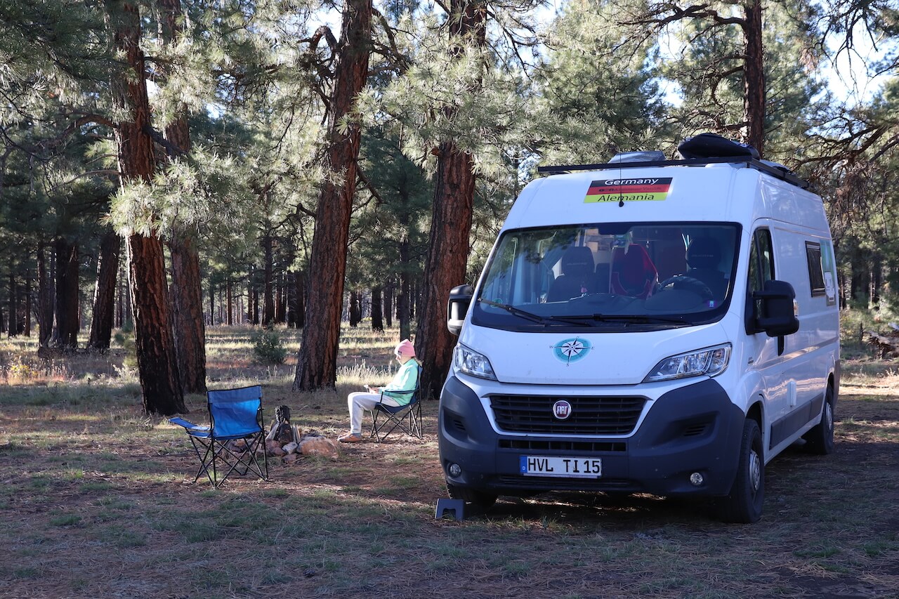Neben dem Nationalpark grenzt wie so oft der National Forest an und hier darf man bis zu 14 Tage am Stück campen. Wir suchen uns einen schönen und versteckten Platz im Wald und machen es uns hier gemütlich. Am Abend sitzen wir am Lagerfeuer und bestaunen im Anbruch der Dunkelheit wieder den grandiosen Sternenhimmel.