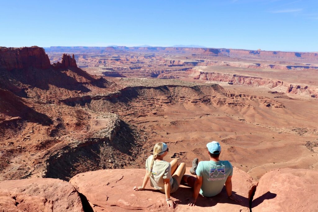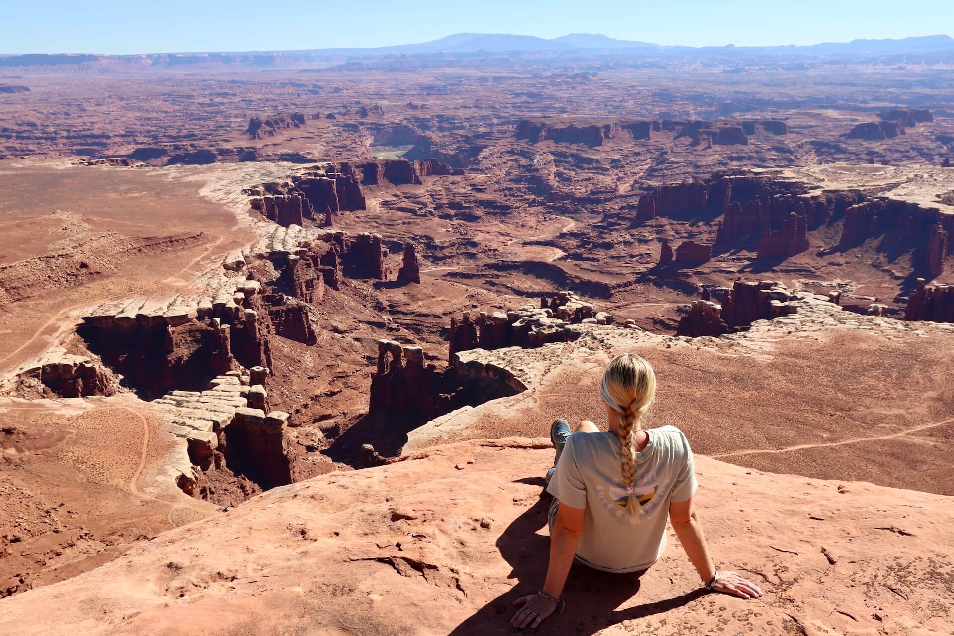 Wir fahren morgens in den Park rein und unser erster Stopp nach dem Visitor Center ist der ‚Mesa Arch‘, ein natürlicher Steinbogen. Von hier hat man schon eine tolle Aussicht auf die weite Landschaft von dem Nationalpark. Wir fahren sprichwörtlich zum Ende der Straße und laufen zu verschiedenen Aussichtspunkten. Wir sind wirklich überrascht, mit solch einer Aussicht haben wir nicht gerechnet. Der Nationalpark ist absolut sehenswert und die weite Landschaft eindrücklich. Uns erinnert der Park an den Grand Canyon, nur natürlich nicht ganz so gigantisch.