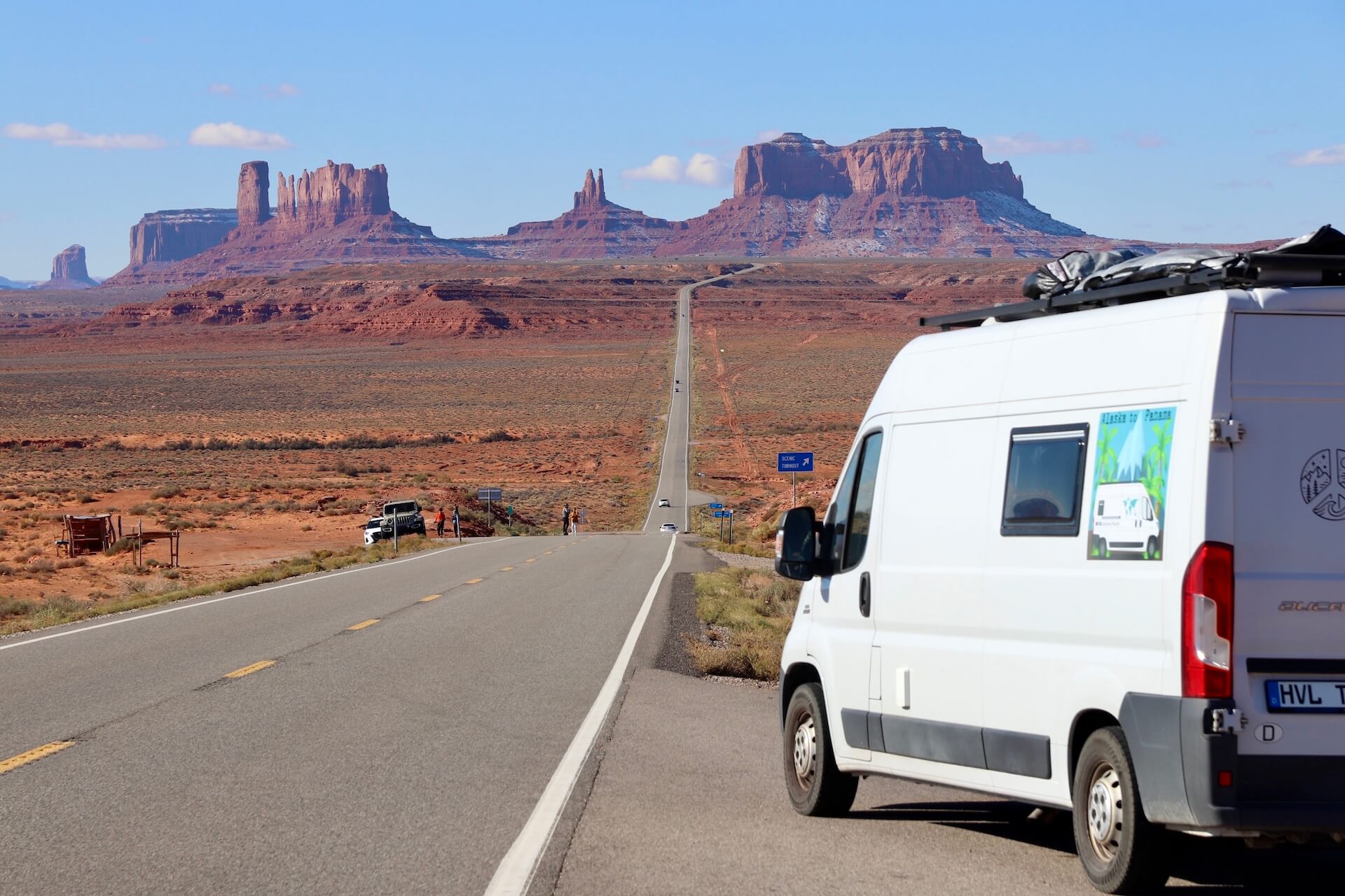 Schon Forrest Gump ist durch das Monument Valley gelaufen und jetzt fahren wir selber hier lang, mit unserem selbst ausgebauten deutschen Campervan. Allein die Aussicht von der Straße ist genauso wie man es sich vorstellt: eine gerade Straße führt geradewegs durch die beeindruckten Filmkulisse. Passenderweise heißt diese Stelle auch ‚Forrest Gump point‘ und es gibt genügend Haltemöglichkeiten an der Straße um das bekannte Foto zu schießen.