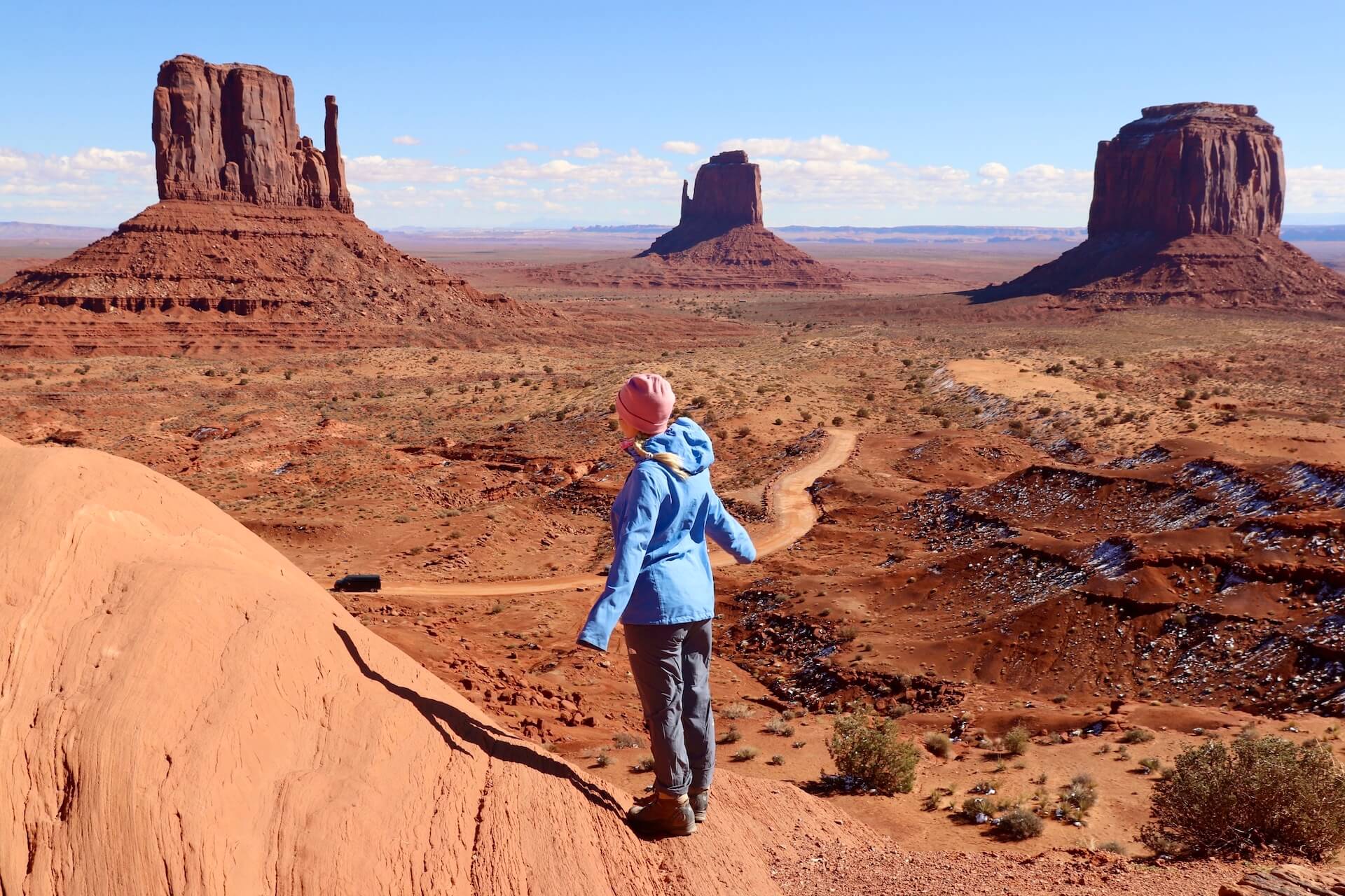Das Monument Valley liegt auf dem Gebiet der Najajo und ist somit kein klassischer Nationalpark.Von der Hauptstraße geht es rein zu dem Najajo Gebiet und wir bezahlen 8$ Eintritt pro Person. Eigentlich wollten wir den Wildcat Trail wandern, doch es hat über Nacht nicht nur etwas geregnet, es hat auch geschneit. Ein eisiger Wind weht und die frostige Luft in’s Gesicht und unsere Klamotten halten den kalten Wetter nicht stand.