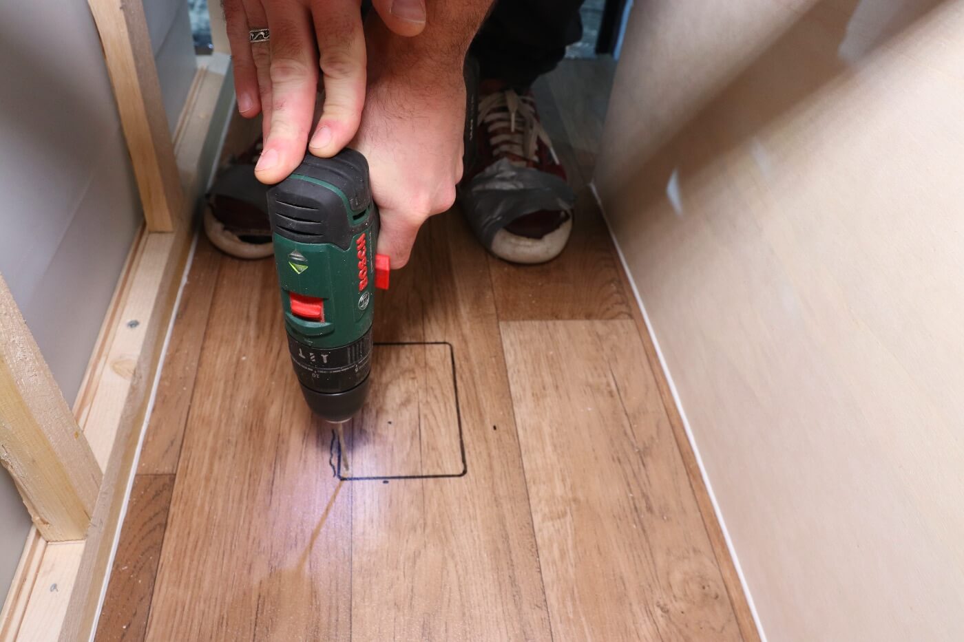 Ausschnitt in den Boden sägen