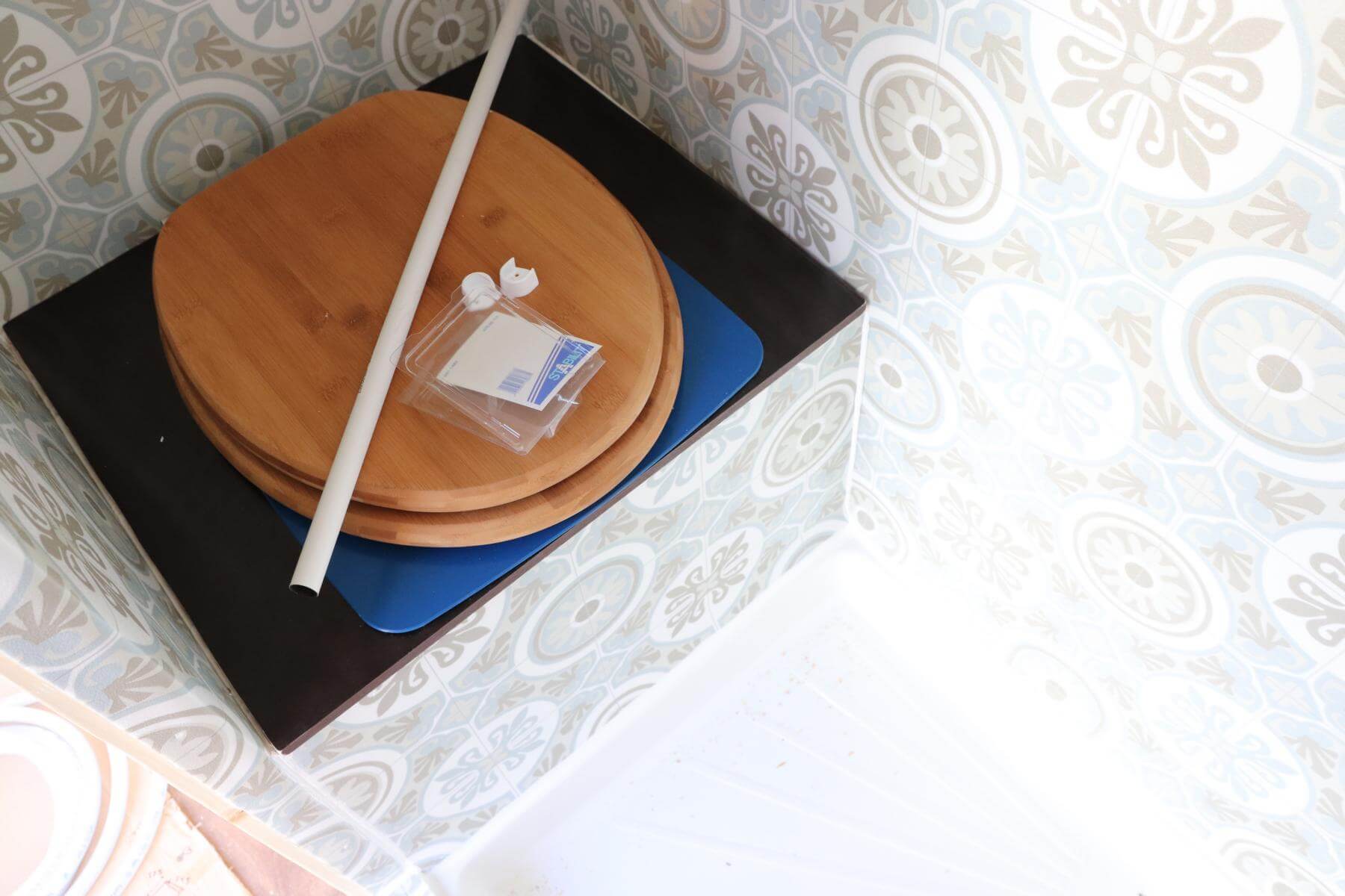 PVC Bodenbelag als Wandverkleidung in der Wohnmobil Dusche