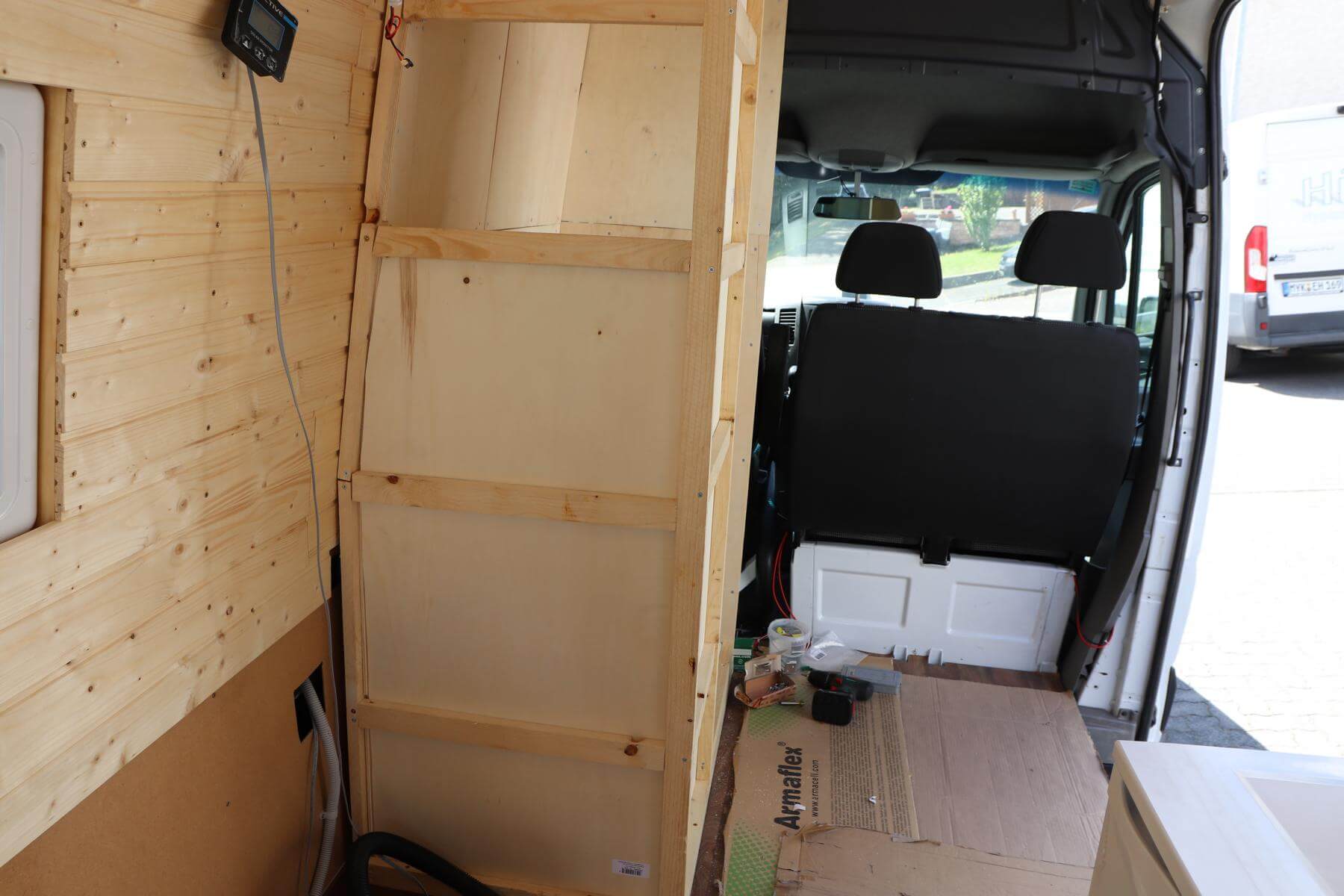 Mittlerweile haben wir die Anschlüsse für die Duscharmatur besser gelöst. Hier findest du mehr Infos: Dusche im Campervan selber bauen | Van Ausbau