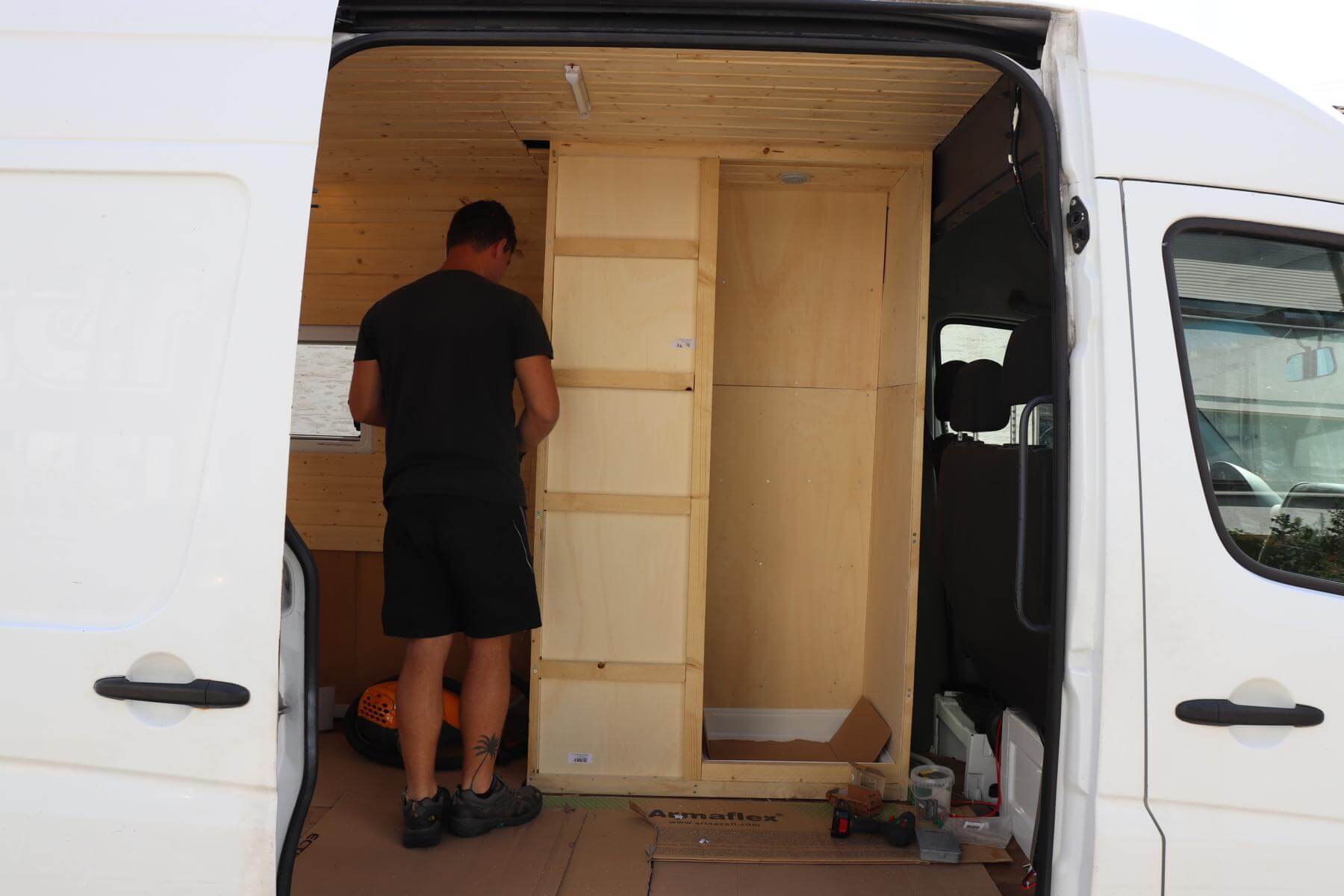 Für uns stand von Anfang an fest, dass wir in unseren Van eine kleine Dusche und eine Toilette (also eine sogenannte Nasszelle) einbauen wollen. Den Platz dafür haben wir in unserem 7 Meter langen Mercedes Sprinter. Die Nasszelle soll direkt hinter dem Fahrersitz eingebaut werden.