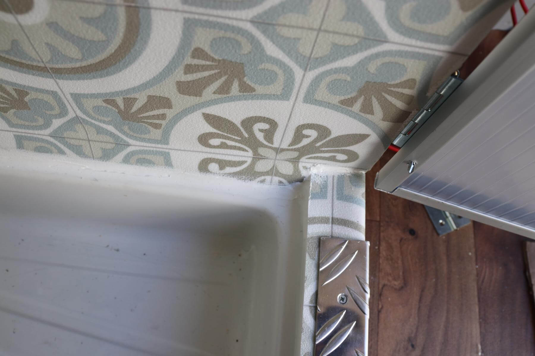 PVC Bodenbelag als Wandverkleidung in der Wohnmobil Dusche