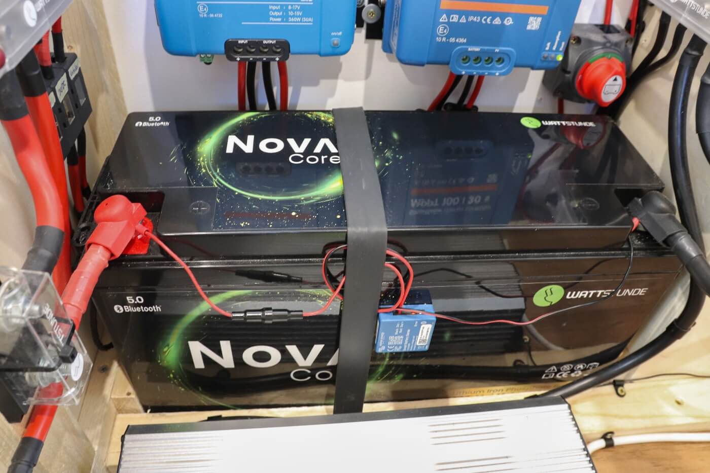 Um die Energie im Camper über eine Solaranlage zu beziehen und so die Batterien zu laden, benötigt man Solarzellen und einen Laderegler. Überschüssige Energie kann dabei auch direkt für die Verbraucher zur Verfügung gestellt werden, so dass man mit seinen Batterien sehr lange hin kommen kann. Vor allem wenn kontinuierlich laufende Geräte verbaut sind, macht es Sinn in eine Solaranlage zu investieren. Läuft ein Kühlschrank den ganzen Tag über, können die Batterien sofort wieder durch die Sonne nachgeladen werden und man hat mehr Kapazität für andere Verbraucher übrig. Wir haben uns für zwei 175W Solarmodule* entschieden und kommen so auf insgesamt 350W Solarpower. Unsere Lithium Batterie* wird mittels Sonnenenergie über den Victron MPPT 100/30 Solarladeregler* mit der für sie perfekten Ladekurve und Geschwindigkeit geladen.