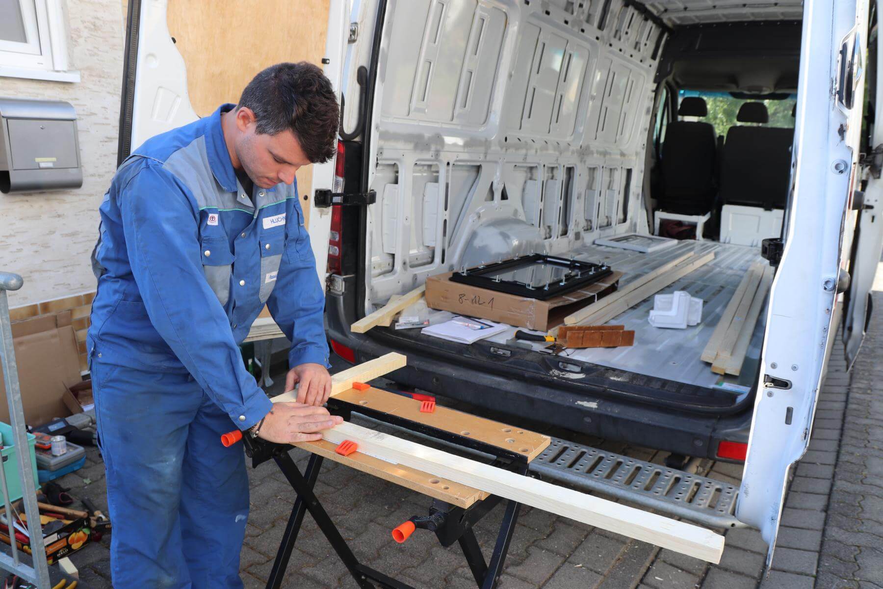 Damit das Carbest Fenster ideal angebracht werden kann, benötigt es eine Wandstärke von 30 mm. Diese Dicke ist bei dem dünnen Blech von unserem Van natürlich nicht gegeben, diese beträgt nur ca einen Millimeter. Es muss also ein Stützrahmen her, welcher die entsprechende Wandstärke erzeugt und zusätzlich Stabilität bringt. Die Hölzer dienen also dazu, die nötige Einbautiefe zu erreichen, welche die Fenster benötigen. Wir haben für un unseren Stützrahmen 28 mm dicke Holzleisten verwendet, die wir miteinander verbohrt haben, sodass ein Rahmen entstanden ist.