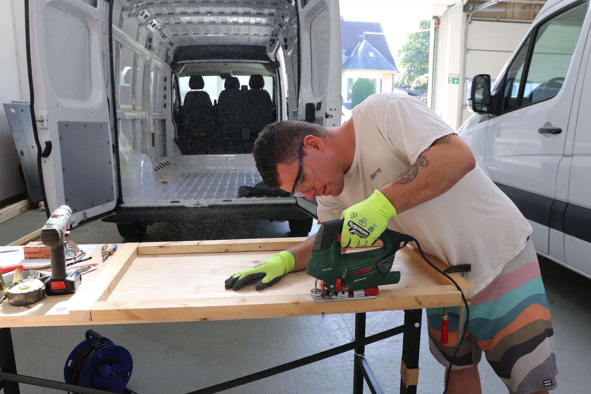 Da wir in unserem Mercedes Sprinter schon genau die gleichen Fenster eingebaut haben, waren wir dieses Mal nicht ganz so nervös und wussten was auf uns zukommt. Ein schönes Gefühl war es natürlich trotzdem nicht, so ein großes Loch in die Wand zu sägen und wir haben sehr gut darauf geachtet, dass es auch wirklich die richtige Stelle ist und es gerade ist. Man sollte sich für das Fenster einbauen im Campervan genug Zeit nehmen, alles in Ruhe machen und sich natürlich über den Einbau informieren. Dann wird auch nichts schief gehen.