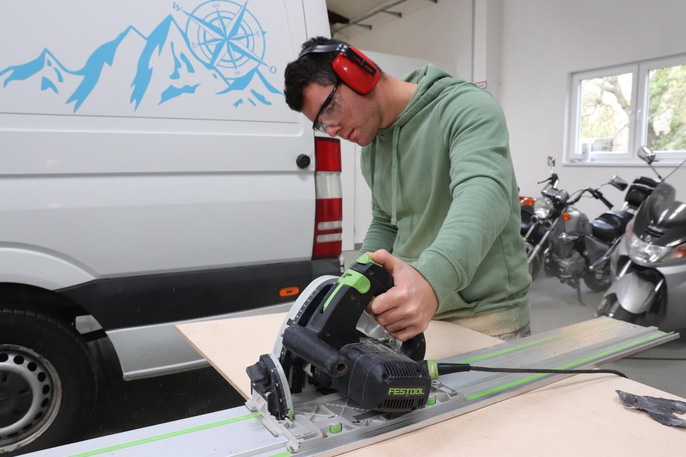 Für den Camper Ausbau benötigt man einiges an Werkzeug und so viel können wir dir sagen: hochwertiges Werkzeug ist teuer! Akkuschrauber, Stichsäge, Nietmutternzange oder eine Crimpzange sind nur einige Beispiele. Bei unserem letzten Ausbau haben wir uns über Ebay Kleinanzeigen eine gebrauchte Festool Tauchsäge* gekauft und diese nach dem Ausbau anschließend für etwas weniger Geld weiter verkauft.