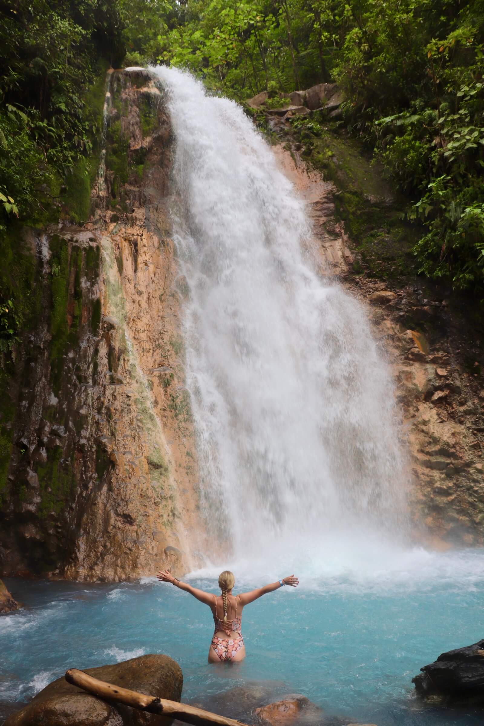 Die Blue Falls of Costa Rica sind unser Lieblingsort in ganz Costa Rica und unserer Meinung nach ein richtiger Geheimtipp. Dank eines Vulkans und den darin enthaltenen Mineralien ist das Wasser dieser sieben Wasserfälle leuchtend blau und auf dem ersten Blick sehen sie richtig unwirklich aus, so schön sind sie. Die Wasserfälle sind in den Bergen bei Bajos del Toro im Regenwald und die Umgebung hier ist einfach einmalig. Um zu den Wasserfällen zu kommen benötigt man einen Guide. Unser Guide hat uns nicht nur den Weg zu den Wasserfällen gezeigt, er hat uns auch viele Informationen gegeben und hat dazu noch schöne Fotos von uns gemeinsam gemacht.