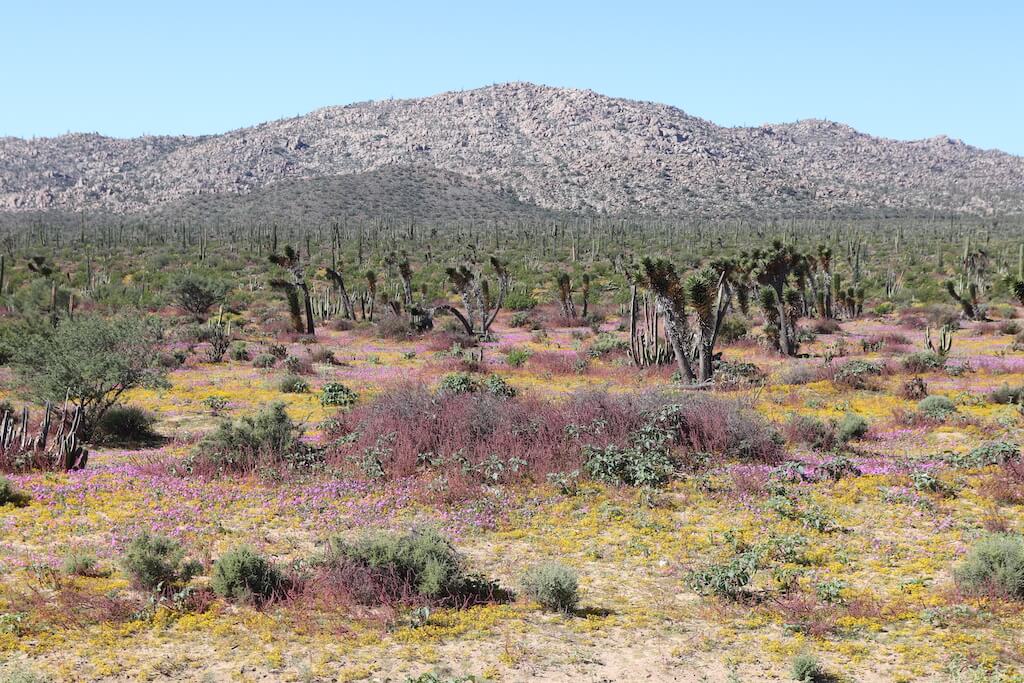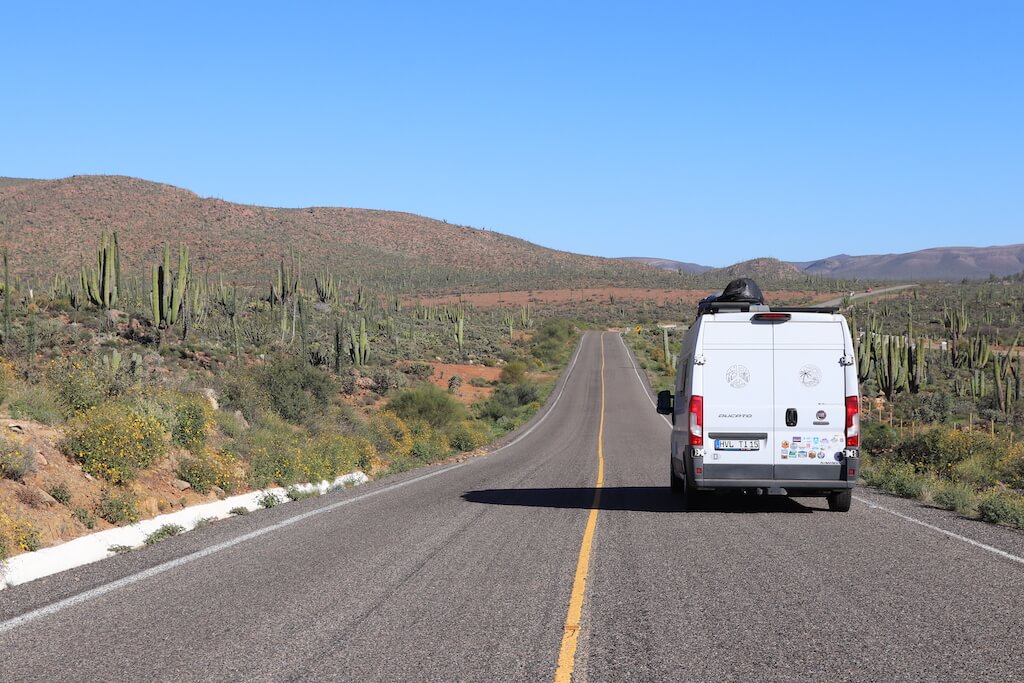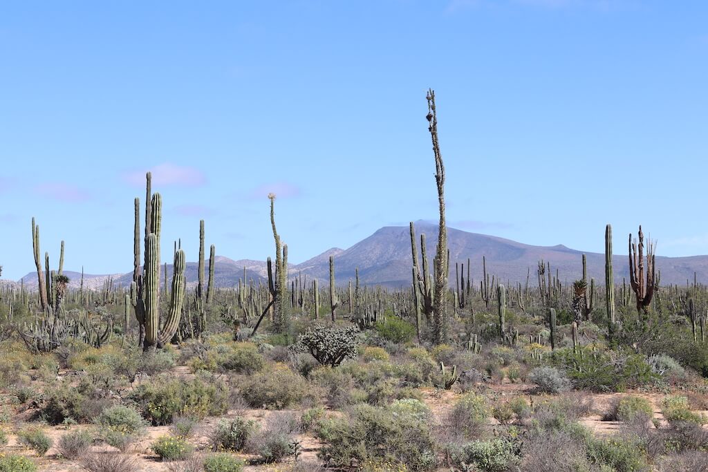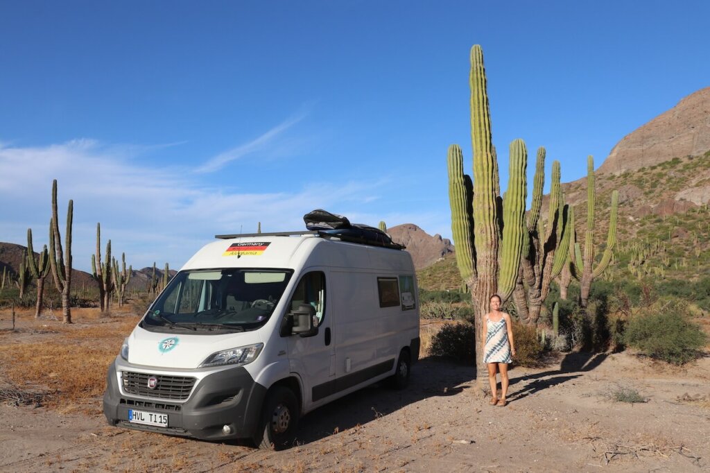 Am nächsten Tag fahren wir die Westküste weiter runter und dann geht es Inland in Richtung der Ostküste. Die Strecke ist sehr einsam und es kommt uns kaum ein Auto entgegen. Hier wachsen auch die riesigen Kakteen, für die Baja California so bekannt ist. Erst sind es nur wenige, dann werden es immer mehr. Wir fühlen uns als würden wir durch einen Kakteengarten fahren, mit so vielen verschiedenen Kakteenarten um uns herum.