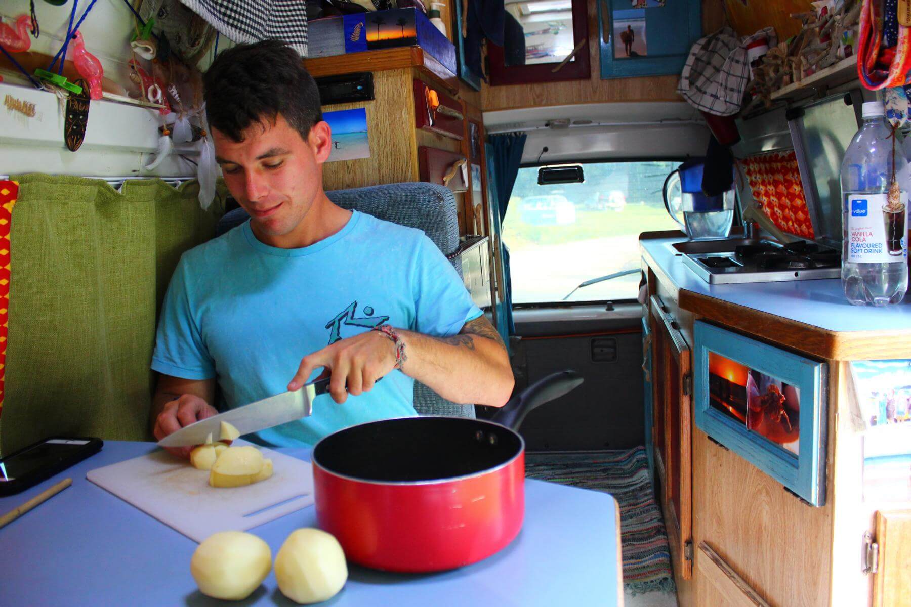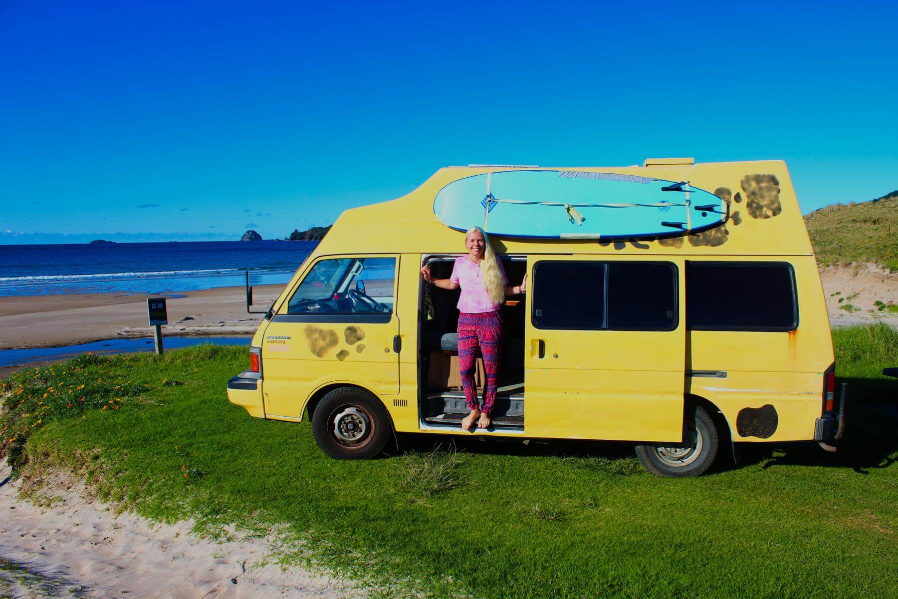 In Neuseeland hatten wir einen etwas größeren Van, in dem konnten wir beide stehen und es gab einen kleinen Kühlschrank sowie eine eingebaute Küche. Das Bett konnte man zum Sofa mit Tisch umbauen Das fanden wir schon ziemlich perfekt! So konnte man sich bei schlechten Wetter mal einen gemütlichen Tag im Van machen. Nur duschen mussten wir entweder draußen mit unserer Solardusche oder in Schwimmbädern.