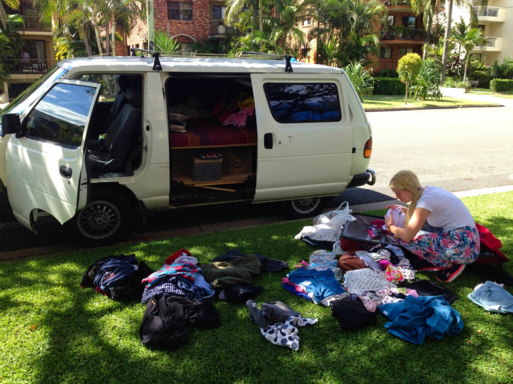Auf unserer fünfjährigen Weltreise hatten wir schon fünf verschiedene Campervans. Von einem kleinen Campervan bis zu einem acht Meter langen Wohnmobil, ausgestattet mit Dusche und Toilette, war schon alles dabei! Genau aus diesem Grund wissen wir nun auch, was wir wollen. In den letzten fünf Jahren haben wir sehr minimalistisch gelebt. In Australien haben wir bei Wind und Wetter immer draußen gekocht und an Strandduschen geduscht. Oder auch mal nur mit Wasserflaschen über den Köpfern. Unser Meinung ist das auch überhaupt kein Problem und gehört zum Abenteuer dazu! Im ersten Jahr unserer Weltreise hatten wir einen kleinen Campervan, im zweiten Jahr ein Allradauto!