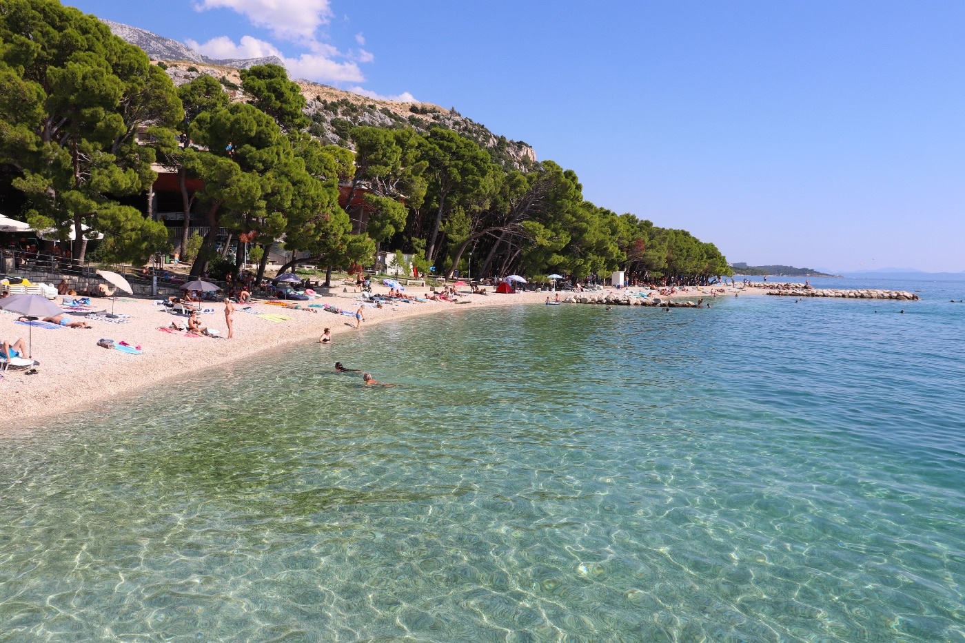 In Kroatien gibt es eine Vielzahl an wunderschönen Stränden, Inseln und klaren Buchten. Die Makarska Riviera erstreckt sich im Süden Kroatiens entlang der dalmatinischen Küste – zwischen den Orten Brela und Gradac. Auf rund 45 Kilometern reiht sich hier ein traumhafter Strand an den nächsten. Im Hintergrund erhebt sich das mächtige Biokovo Gebirge, dessen Gipfel bis zu 1.762 Meter hoch sind und wie eine beeindruckende Kulisse über der gesamten Küste stehen. An dem Hauptstrand bei Krvavica ist ziemlich viel los, aber geht man etwas weiter, hat man die Buchten komplett für sich alleine.