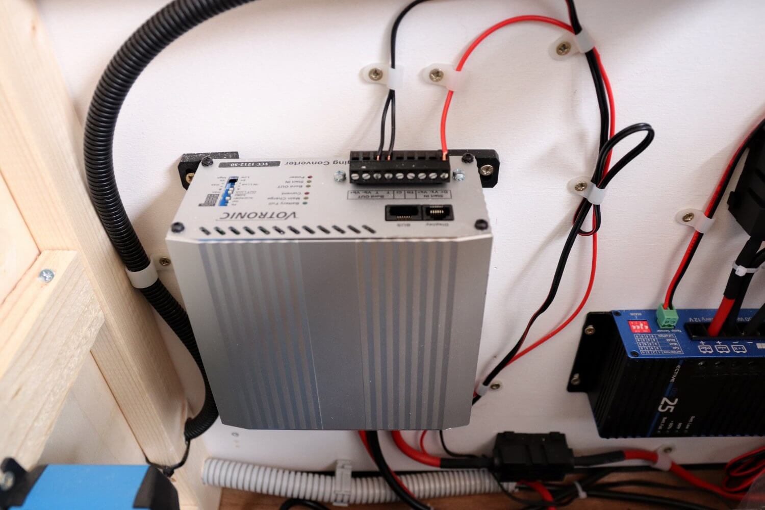 Achte beim Einbau unbedingt auch auf den richtigen Kabelquerschnitt. Wir haben uns an die angegebenen Querschnitte in der Anleitung des Votronic 1212-50* gehalten und ein 16 mm² Kabel von der Starterbatterie zum Ladebooster und weiter zur Aufbaubatterie verwendet. Idealerweise würde man eine dickere Leitung verwenden, um den bestmöglichsten Wirkungsgrad zu erreichen. Das schlägt sich dann aber wiederum in den Kosten wieder. Für uns persönlich reicht eine 16 mm² Leitung, da wir zu dem Ladebooster noch eine leistungsstarke Solaranlage auf dem Dach des Vans verbaut haben. Mit Hilfe unseres Kabelquerschnittsrechners kannst du die idealen Kabelquerschnitte für deinen Van Ausbau errechnen.