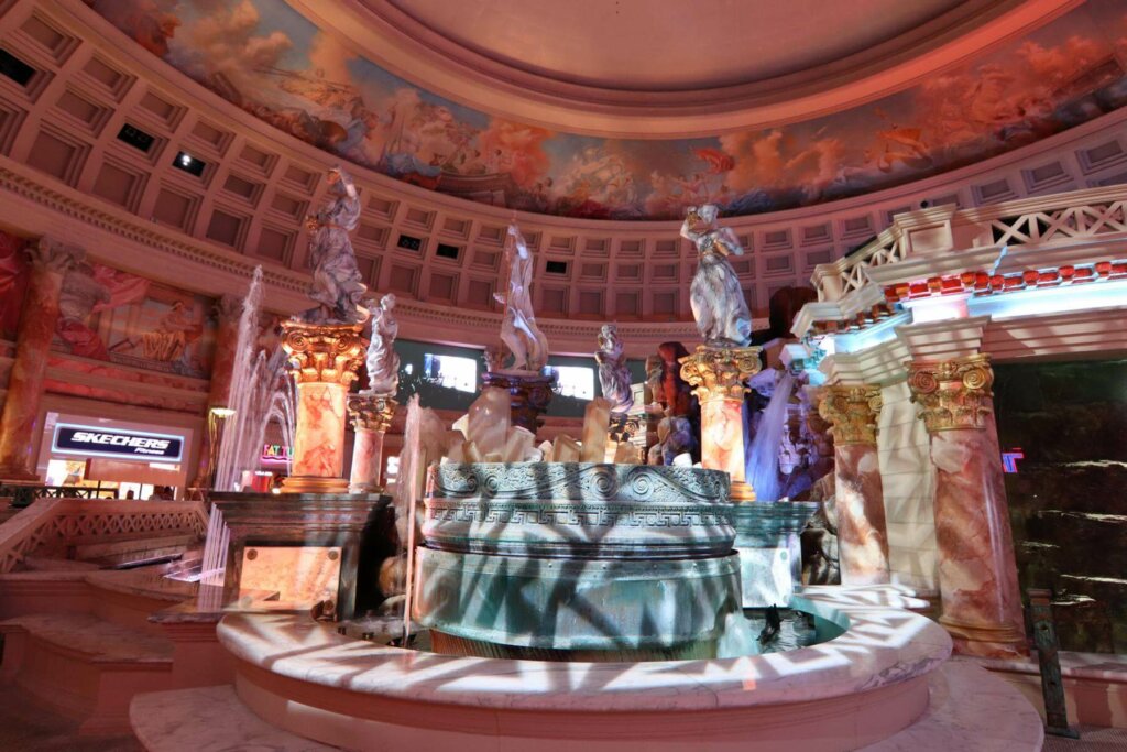 Jeder, der den Film Hangover gesehen hab, dem wird das Caesars Palace direkt bekannt vorkommen. Das Hotel ist im alten römischen Stil erbaut und beherbigt ebenfalls (natürlich) ein Shoppingcenter mit einem nachgebauten Himmel. Hier gibt es eine Wassershow der versunkenen Stadt Atlantis. Davon wussten wir vorher gar nichts und haben sie nur aus Zufall entdeckt!