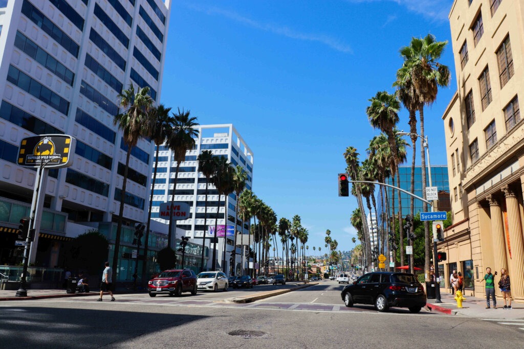 Und dann kamen wir leider doch noch in den berüchtigten Los Angeles Stau. Bei 34 Grad. Mit unserem 30 Jahre alten schweren Gefährt. Wir hatten uns einen Park & Ride Parkplatz in der Nähe von dem Walk of Fame uns als Schlafplatz rausgesucht. Nach einer Stunden Fahrt kamen wir endlich an. Total verschwitzt (unser Auto hat ja keine Klima) und haben dann festgestellt, dass unser Van zu groß für den Parkplatz ist. Außerdem war kein anderer Camper da. Wir haben dann noch die Fahrrad-Halterung abgebaut und uns auf einen Parkplatz gequetscht und einfach nur gehofft, dass der Schlafplatz für diese eine Nacht klappt. 24 Stunden Parken kosten hier nur 3$ und mit der Metro kann man dann ganz einfach in die Stadt fahren. Die Nacht hat dann auch geklappt und wir sind am nächsten Morgen mit der roten Linie der Metro die zwei Stationen zu dem Walk of Fame gefahren. Eine Einzelfahrt kostet 1,75$ und als neuer Fahrer muss man sich außerdem eine Tap Karte für 2$ kaufen. Eine Tageskarte kostet 7$. Von unserem recht ruhigen Parkplatz waren wir dann auf einmal voll im Geschehen!