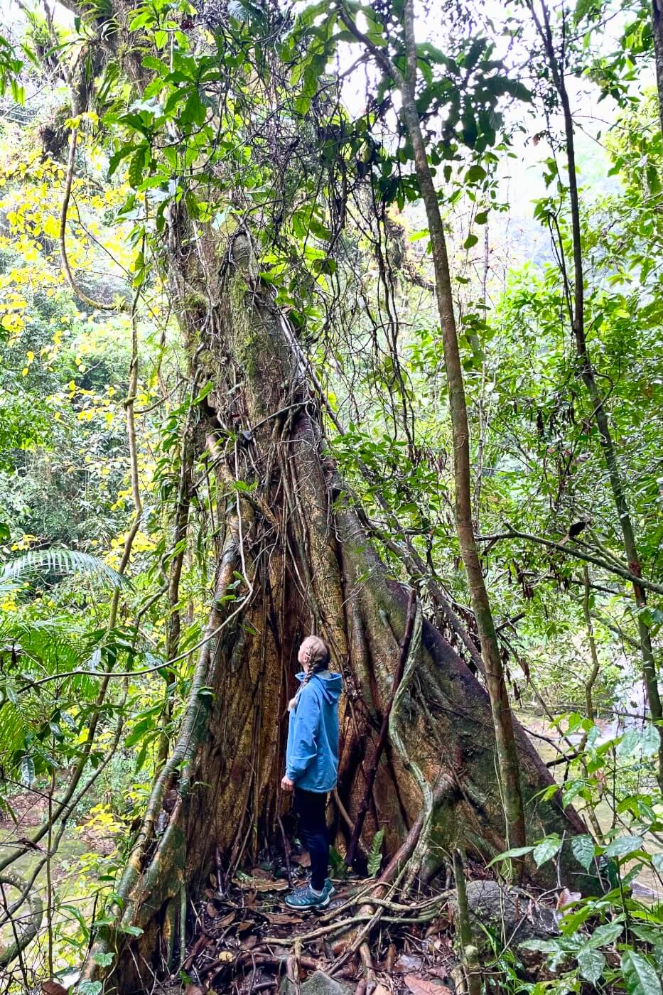 Nicht nur die Küste von Camburi ist schön, im Inland verstecken sich verschiedene Wasserfälle. Wir wandern zu den Cahoeira da Serpente, einer Reihe von einigen Wasserfällen, mitten im Regenwald. Der Weg führt uns durch einen wunderschönen Regenwald und wir sehen viele verschiedene Bäume und Pflanzen. Zum Glück bemerken wir rechtzeitig den Blutegel auf Tobis Regenjacke, der schon eifrig auf der Suche nach einem Durchgang zur Haut ist.