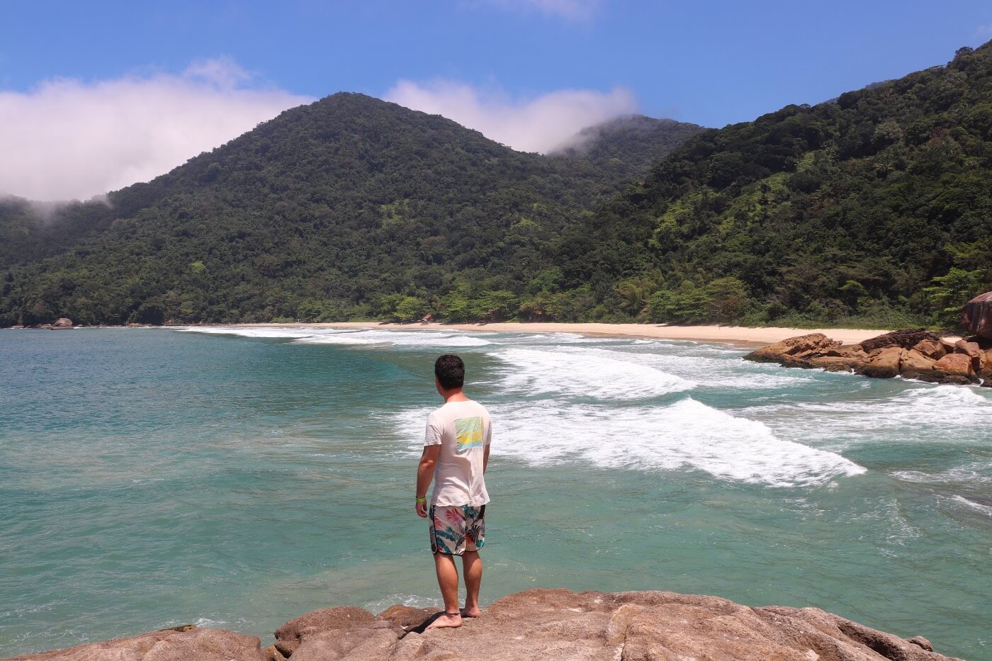 Grüner Regenwald zusammen mit traumhaften Stränden und einem ganz entspannten Flair – das ist die Ilha Grande. Auf der Insel gibt es ein gut ausgebautes Netz von Wanderwegen, die zwischen zwei Kilometern bis zu 15 Kilometern lang sind. Insgesamt bleiben wir (iclusive dem Anreisetag) für drei Tage auf der Ilha Grande. Unser Highlight ist die Wanderung zu dem Lopes Mendes Beach, wo wir noch bei anderen schönen Stränden vorbei kommen.
