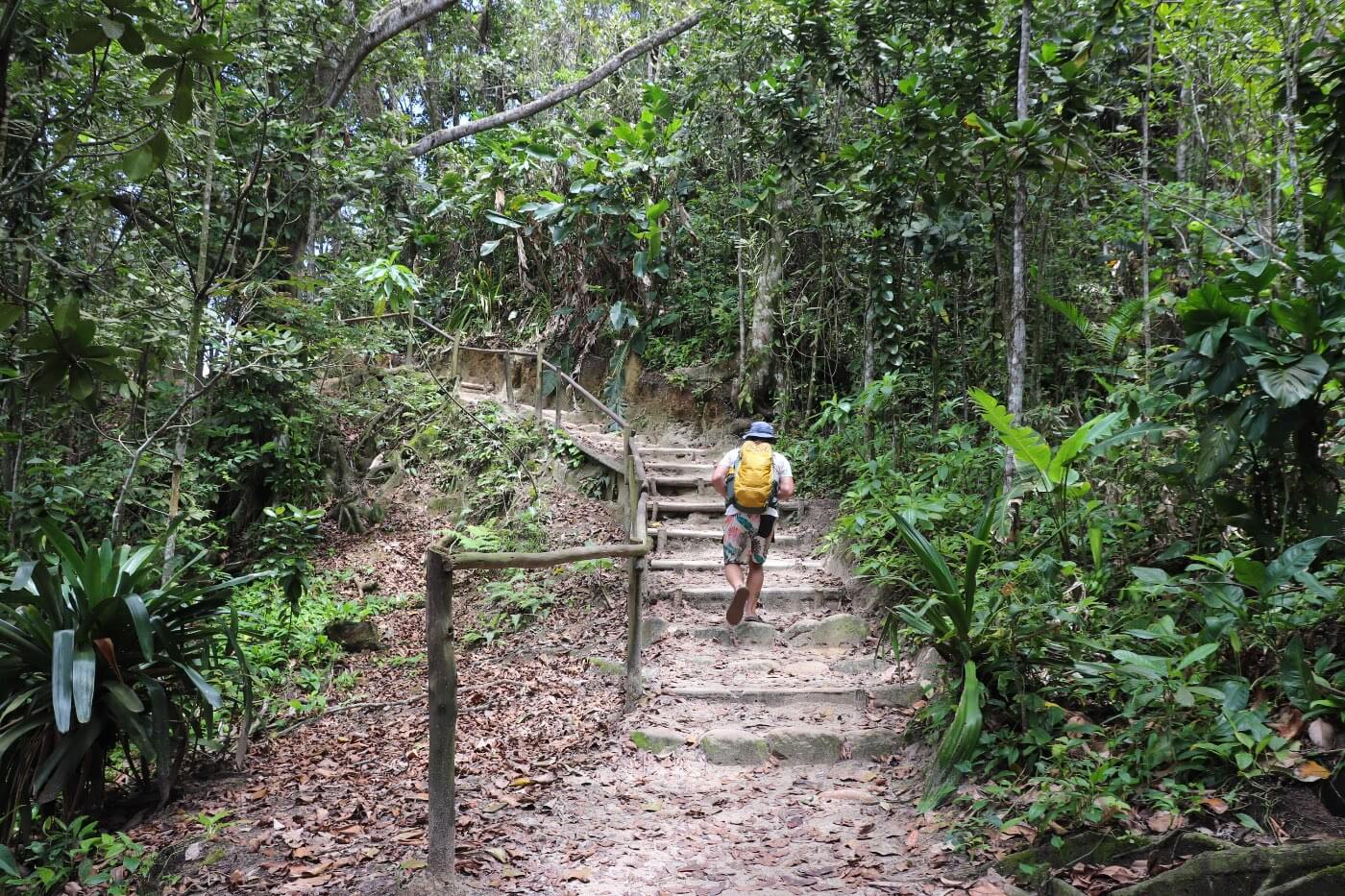 Ein kleiner Weg führt von hier durch den Regenwald zum nächsten Strand. Die Wege sind hier gut ausgeschildert und zusammen mit einheimischen Touristen gehen wir den kleinen Berg hoch und zum nächsten Strand.