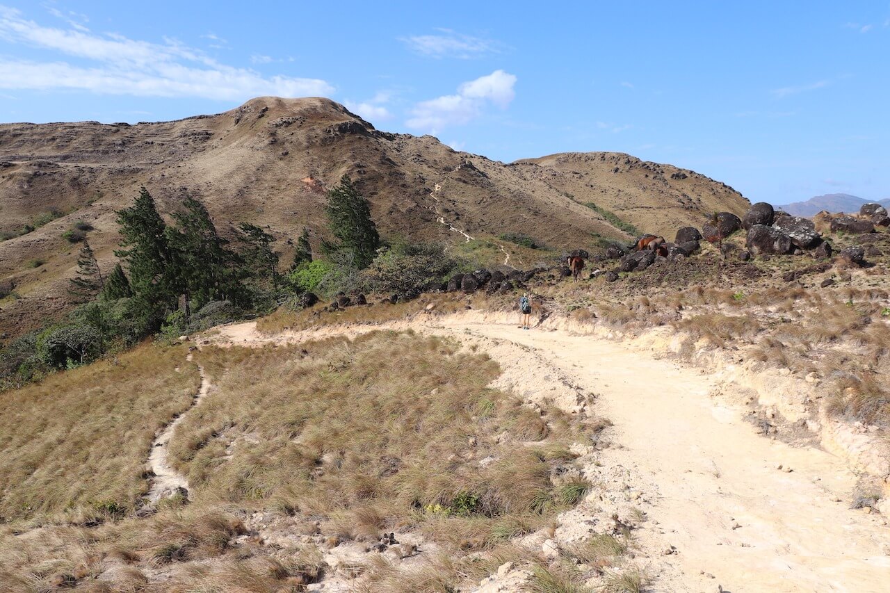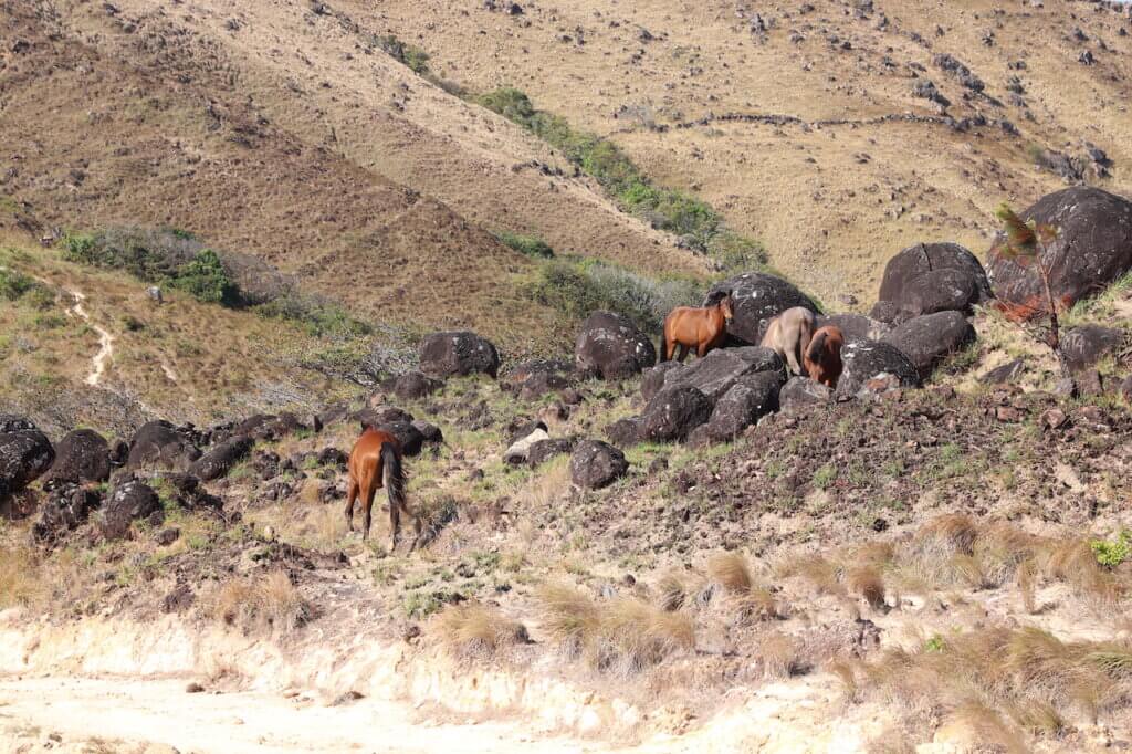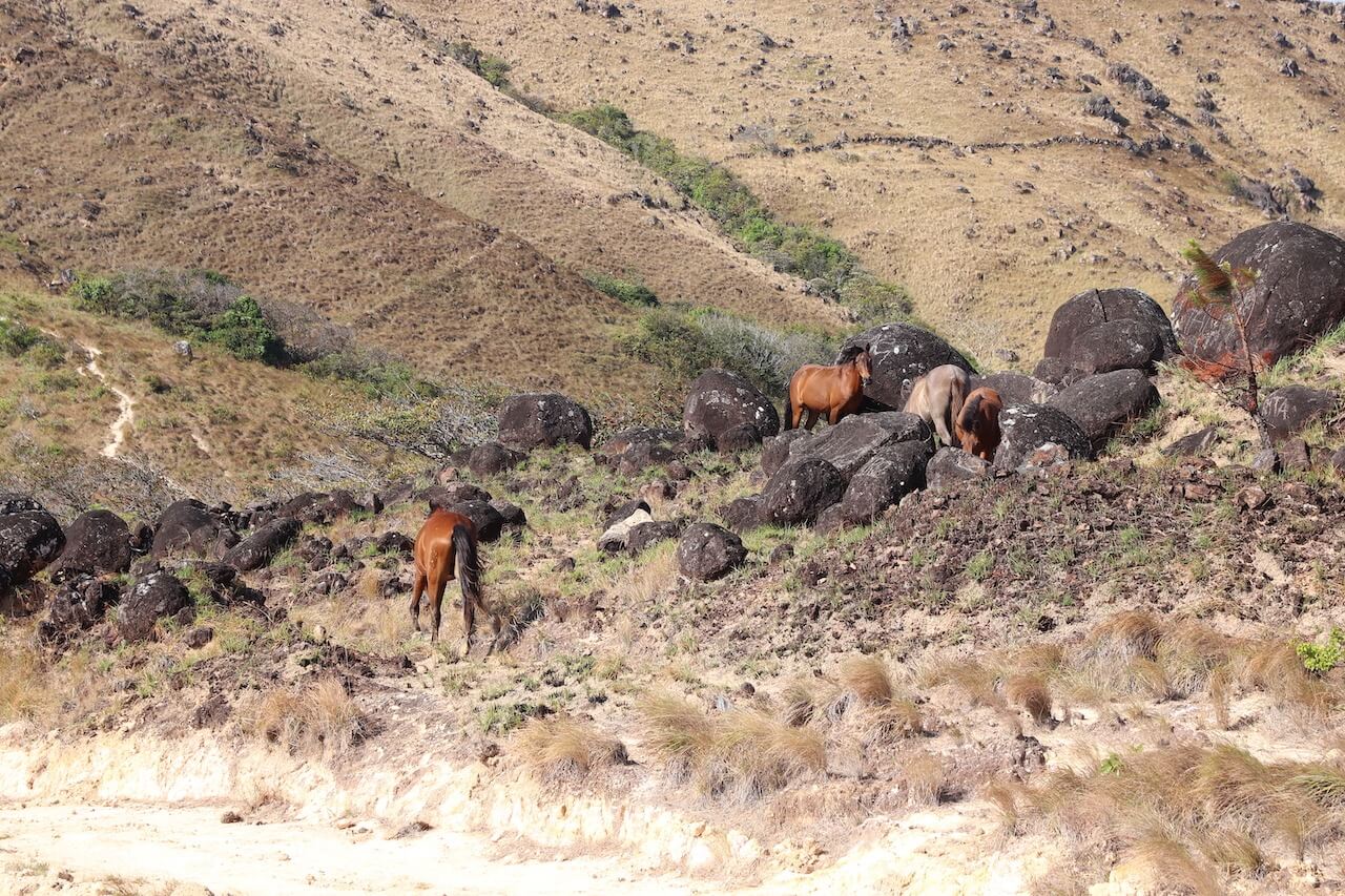 Der La Silampa Wasserfall ist eine kleine Oase in den trockenen Hügeln von Panama. Wilde Pferde suchen in der trockenen Landschaft nach Gras und ein heftiger Wind zieht über die Hügel. Der Wind ist so stark, dass das Gehen richtig unangenehm ist und man einfach nur möglichst schnell den Wind entkommen möchte. Der Wind peitscht aber ungebremst über die Hügel und wir kommen teilweise schon richtig ins Wanken.
