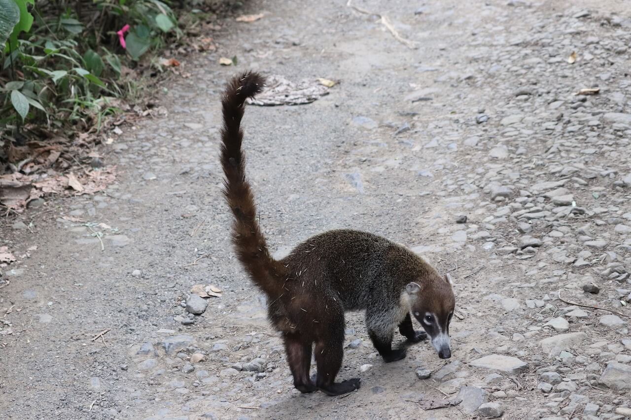 Unser Highlight ist dieser süße Nasenbär, der uns auf dem Weg entgegen kommt. Der Nasenbär ist sehr neugierig und erhofft sich wahrscheinlich von uns einen Leckerbissen zu bekommen. Wir haben aber nichts dabei und ohnehin sollte man Wildtiere nicht füttern, da sie sich sonst daran gewöhnen und irgendwann ihre natürlichen Verhaltenweisen verlernen. Als wir weiter gehen läuft der Nasenbär wie ein Hund neben uns her, dieser Anblick ist wirklich goldig. Wirklich ein einmaliges Erlebnis auf unserer Reise, den wir so schnell nicht vergessen werden.