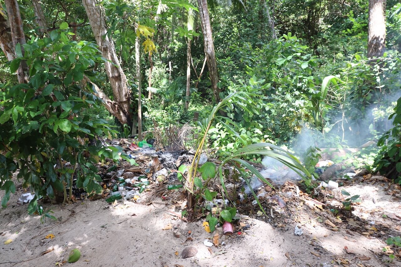 Durch das Wochenende fahren auch viele Einheimische auf die Insel und so ist bei dem Bootsanleger schon richtig viel los. Auf der Insel gibt es zwei Strände; einen öffentlichen und einen Privatstrand, der zu einem Hotel gehört. Leider liegt am Strand und vor allem im Gebüsch sehr viel Müll. Viele scheinen einfach ihren Müll in das Gebüsch zu werfen und dann bleibt er halt hier liegen und wird hin und wieder angezündet und verbrennt mehr oder weniger,- ein trauriger Anblick.