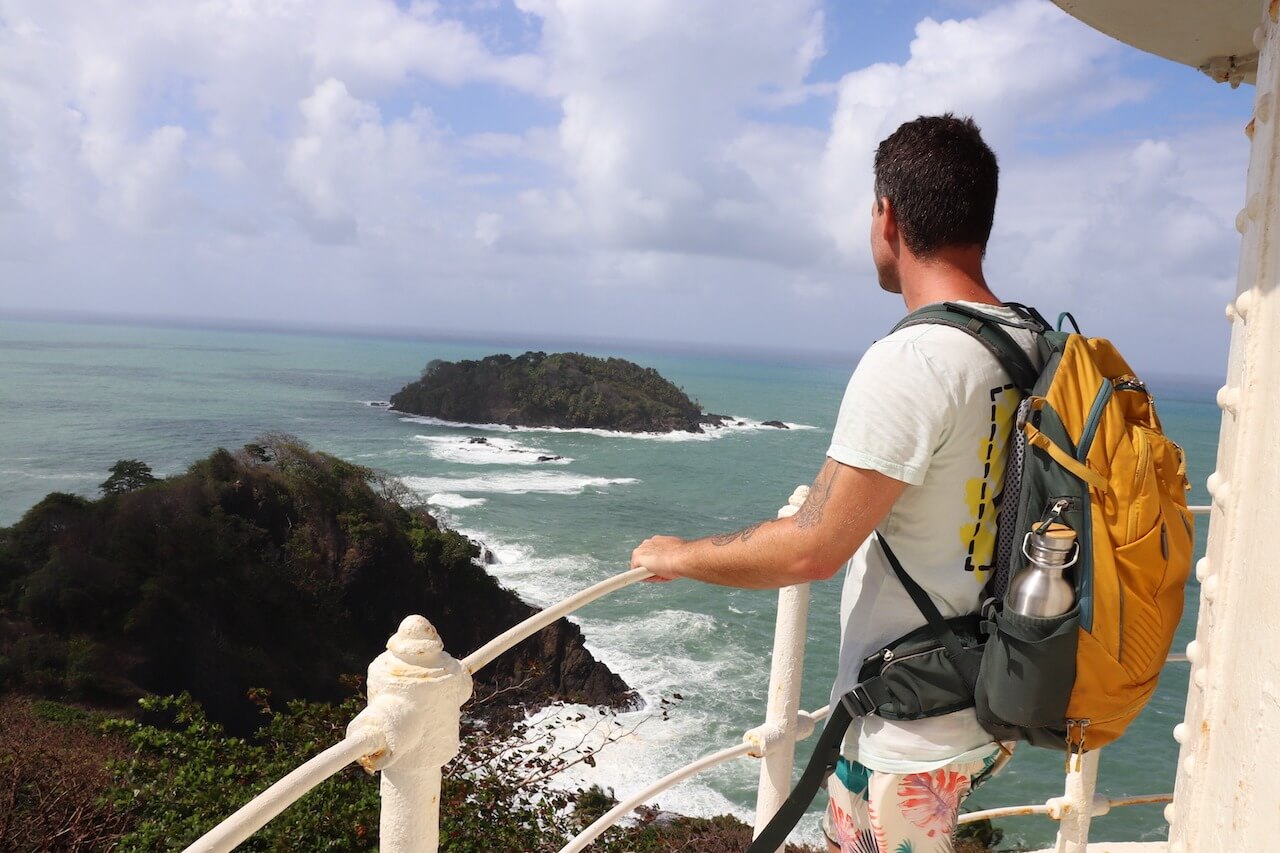 Trott der Schattenseiten und dem Müll fühlen wir uns hier noch einmal wie im Paradies und der Besuch der Insel ist ein gelungener Abschluss von unserer Reise. Wir haben auch unsere Schnorchelsachen dabei, aber das Wasser ist sehr trüb und man sieht sprichwörtlich nicht die Hand vor Augen. Wir gehen zu Fuß um die Insel bis zu einem alten und verlassenen Leuchtturm. Von hier haben wir noch eine tolle Aussicht über das Festland un die anderen Inseln.