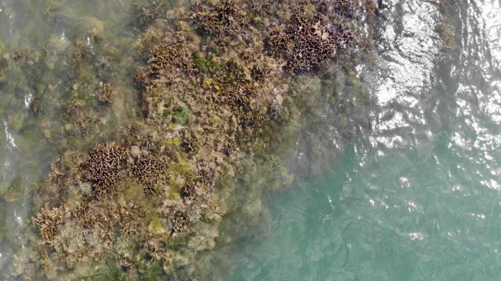 Von hier starten wir unsere Drohne und die Bilder sprechen wahrscheinlich für sich. Hier stehen wir mit unserem Van wie im Paradies. Man sieht die Korallenriffe von oben und die gesamte Küstenlinie.
