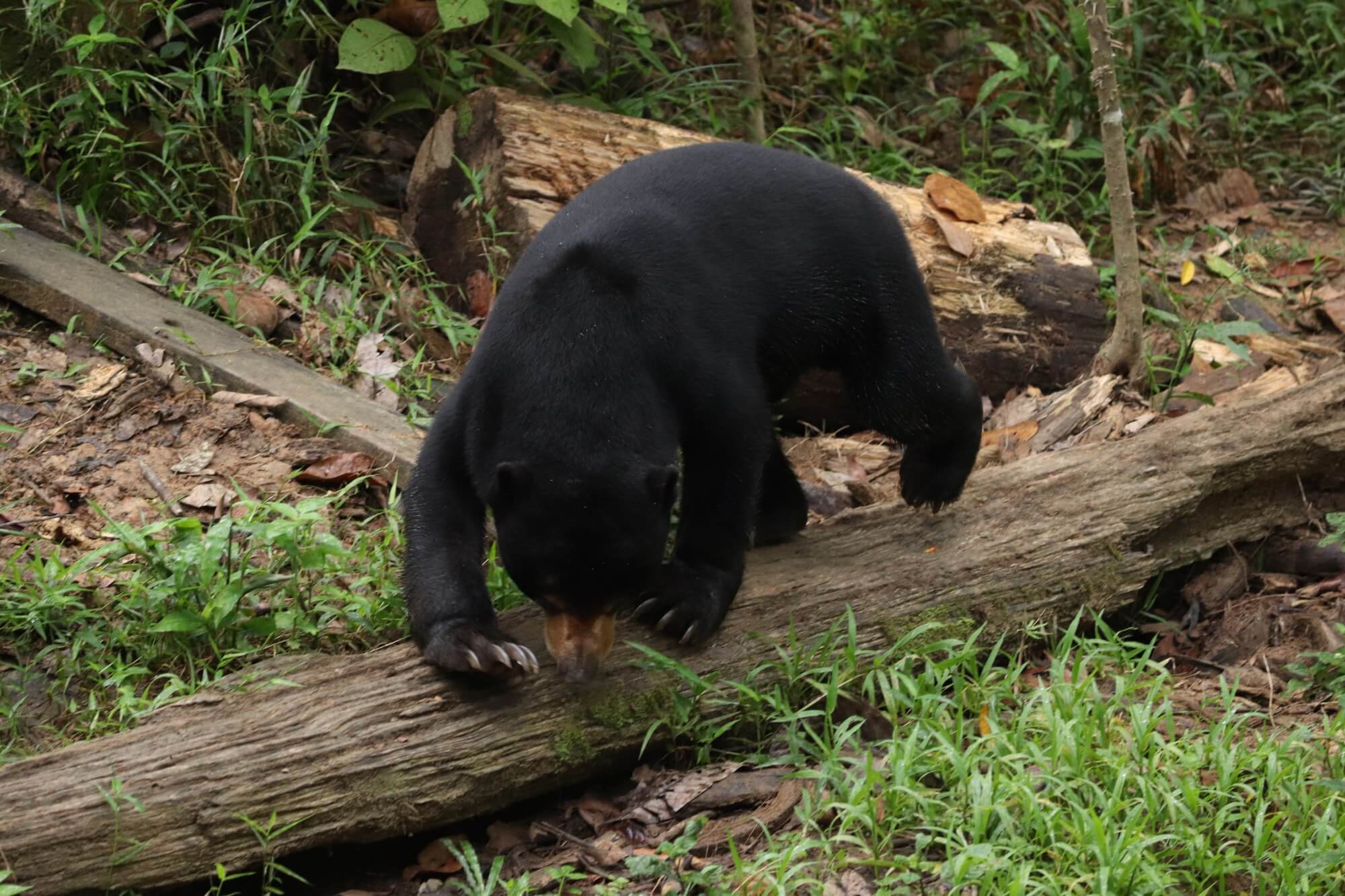Um 11 Uhr schließt das Orang Utan Centre und so gehen wir zu dem Sun Bear Conversation Centre, welches sich direkt gegenüber befindet. Der Malaienbär, auch Sonnenbär genannt, ist der kleinste Bär der Welt und ist in den tropischen Regenwäldern Borneos beheimatet. Der Malaienbär ist durch den Verlust des Regenwaldes und illegaler Wilderei vor dem Aussterben bedrohnt und das Zentrum kümmert sich um rund 45 aus der Gefangenschaft befreite Bären. Der Eintritt ist mit 10€ pro Person nicht gerade günstig, aber er erfüllt einen positiven Zweck und mit unserem Besuch können wir die Auffangstation unterstützen. Es gibt drei Plattformen, von denen man die Malaienbären sehr gut beobachten kann.