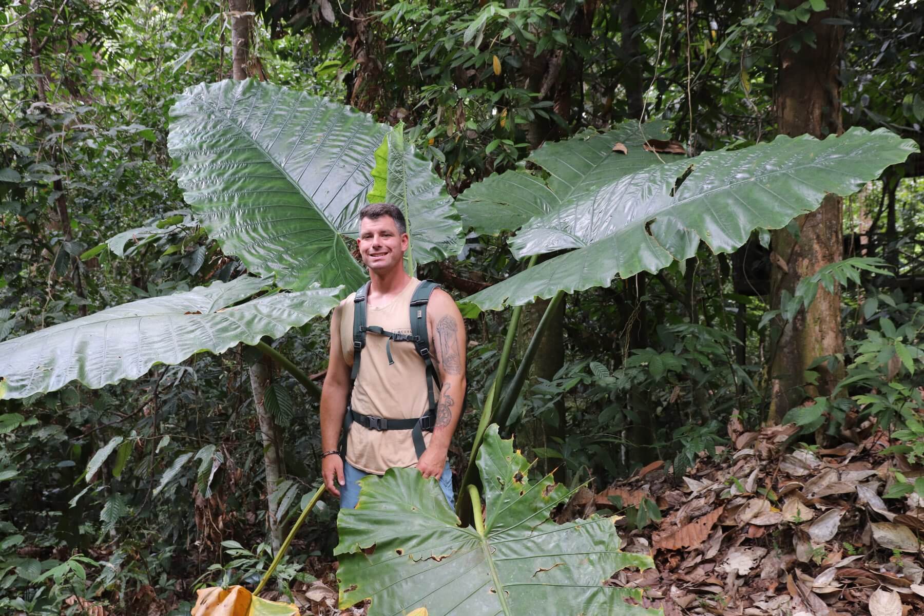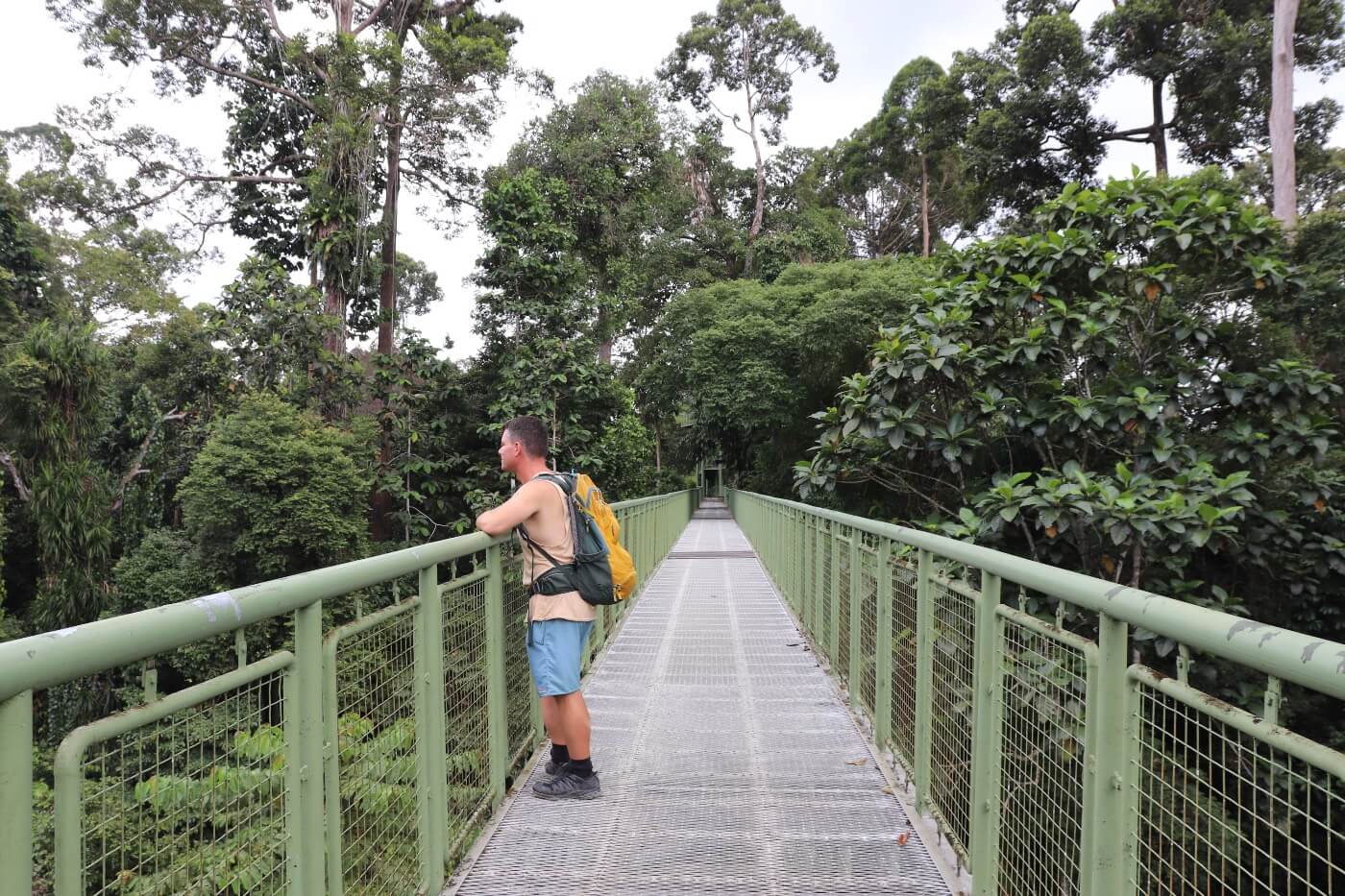 Nachdem wir die Auffangstationen besucht haben möchten wir in die Natur und die Tiere in freier Wildbahn sehen. Das Rainforest Discovery Centre befindet sich in Sepilok und umfasst einige kurze und lange Wanderwege durch den Regenwald, wie auch einen sehr schönen Canopy Walk. Uns macht das heiße Wetter etwas zu schaffen und nach kurzer Zeit sind wir bei 34 Grad und 76% Luftfeuchtigkeit komplett nass geschwitzt. Auch im Schatten und bei Nichtbewegung läuft uns der Schweiß schon den Rücken runter und sobald wir uns bewegen sind wir schnell komplett nass und klebrig.