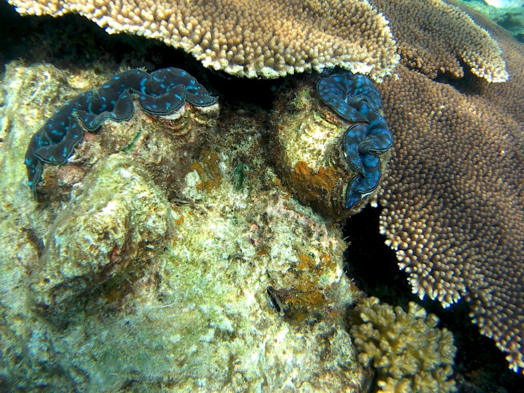 Diese Muscheln wachsen oft auf Korallen und es gibt sie in verschiedenen Farben. Kommt ihnen ein Fisch oder kommt man ihnen zu nah, zucken sie zusammen.