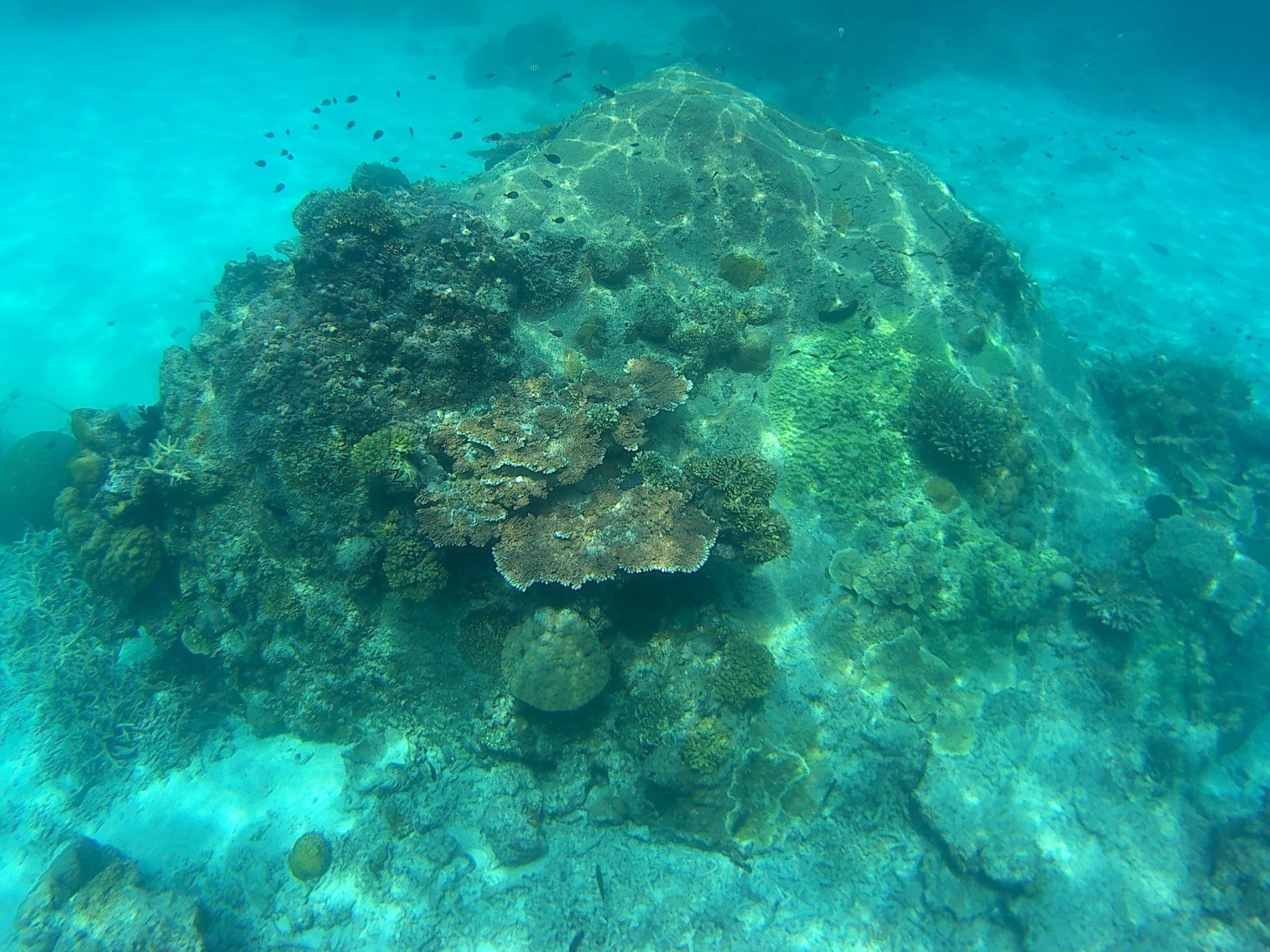Generell sind die Korallenriffe noch gut intakt. Leider ist der Meeresboden an einigen Stellen mit toten Korallen übersät. Mit der Dome an der GoPro haben wir tolle Bilder mit dem Kajak machen können!