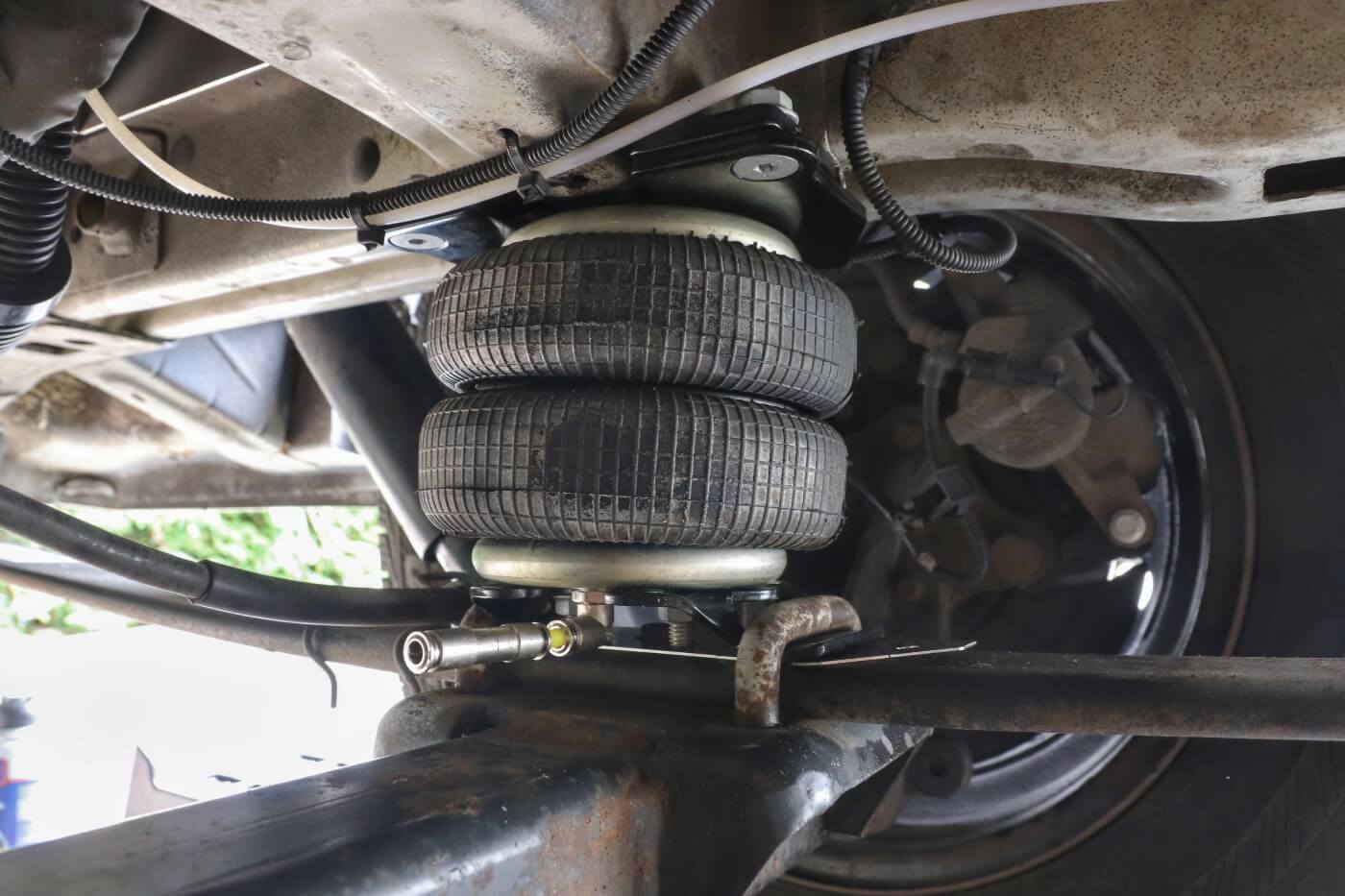 Unser Fiat Ducato hat ein sogenantes „Light Fahrwerk“ und ein zulässiges Gesamtgewicht von 3.500 Tonnen. Eine Luftfederung, die auch Zusatzluftfederung genannt wird, ergänzt die serienmäßige Federung um zusätzliche Luftbälge an den Achsen. Diese Bälge können mit Luft befüllt werden, um die Fahrzeughöhe und die Federhärte anzupassen.